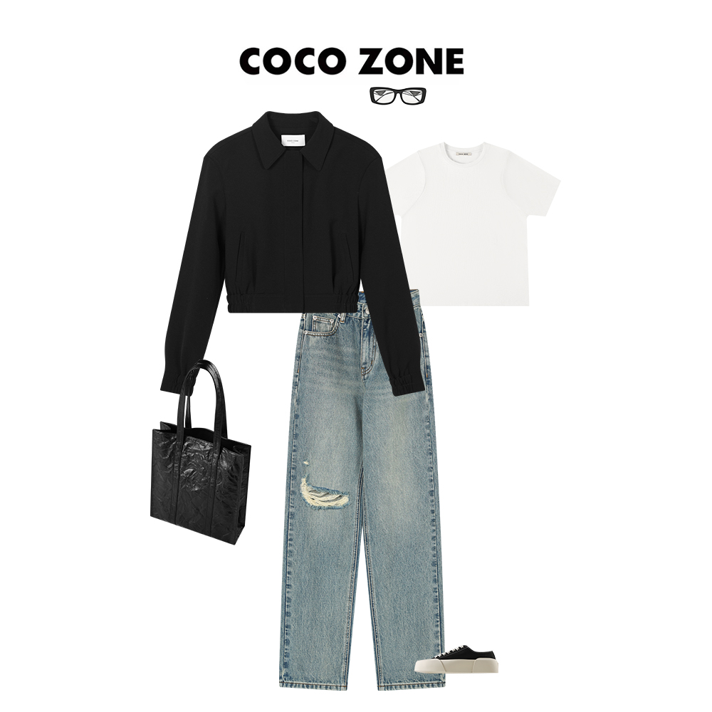 COCO ZONE 新款早秋短款长袖印花翻领外套时尚23C29487