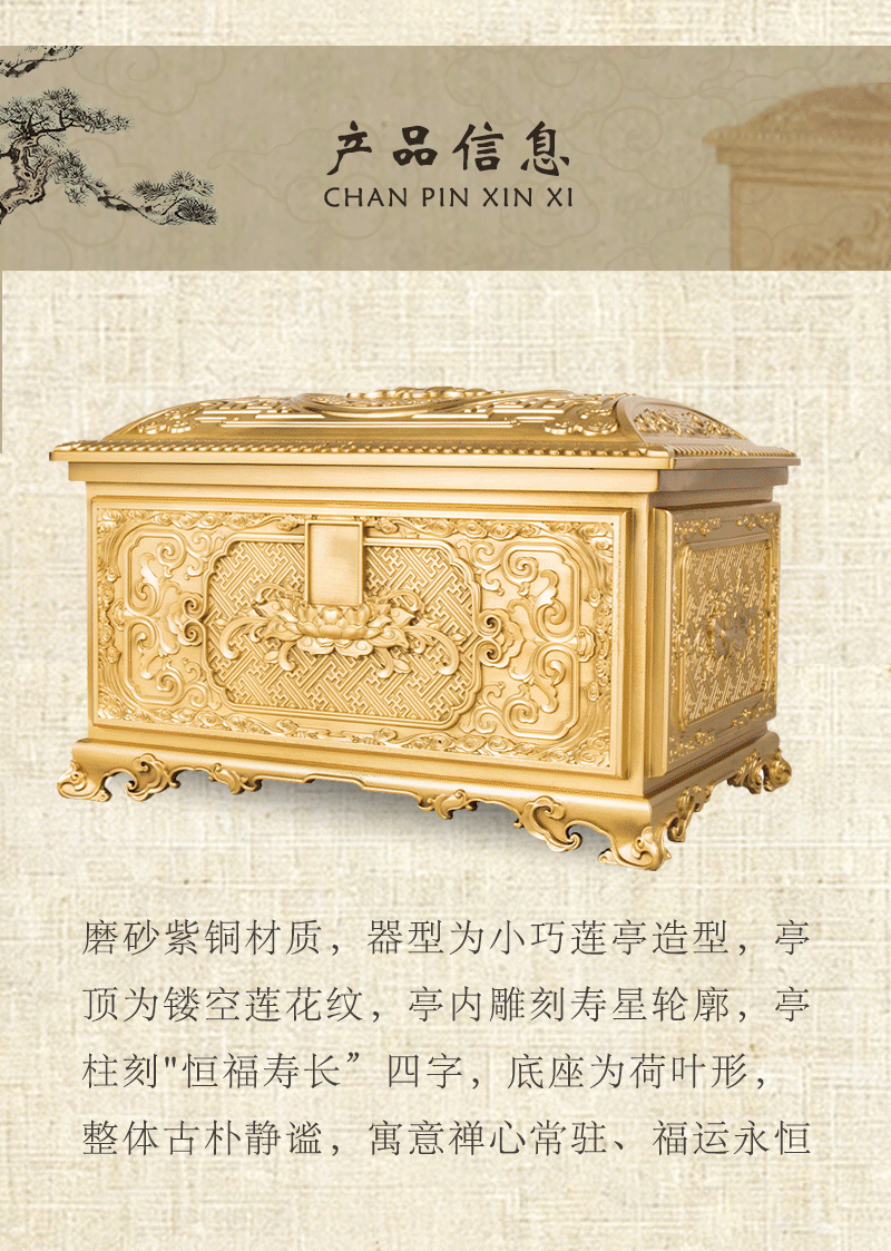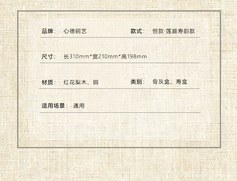 铜制骨灰盒恒款·莲庭寿韵款红花梨木男女寿盒
