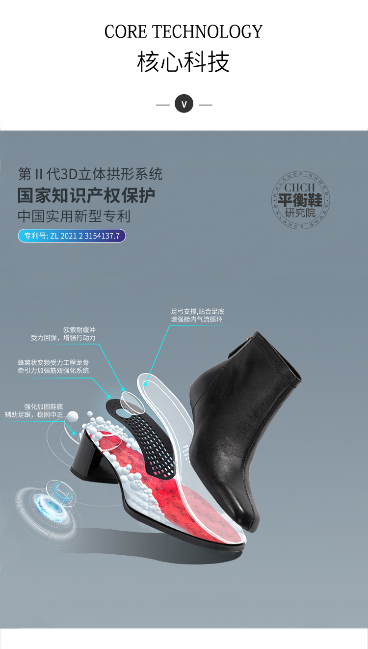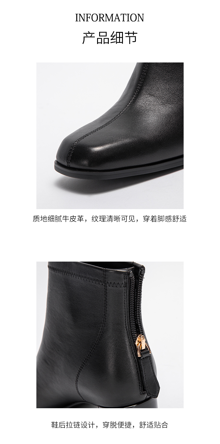 CHCH平衡鞋2024秋冬新品方头粗跟时装靴牛皮短靴女靴CO2B6031