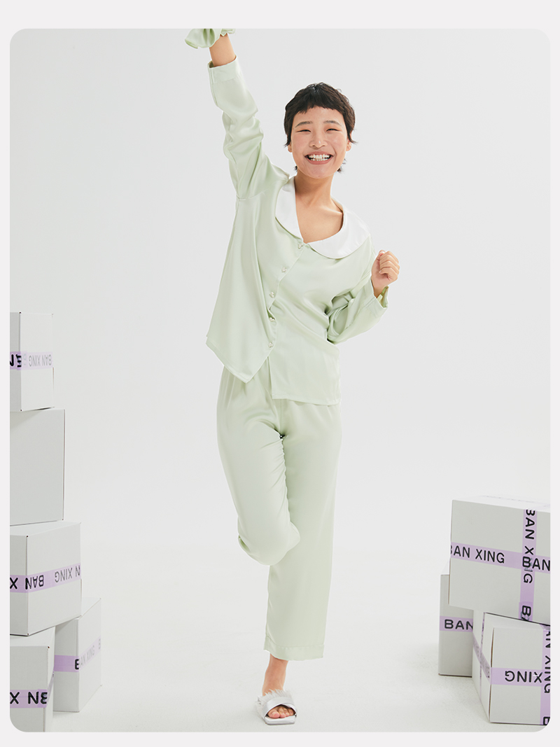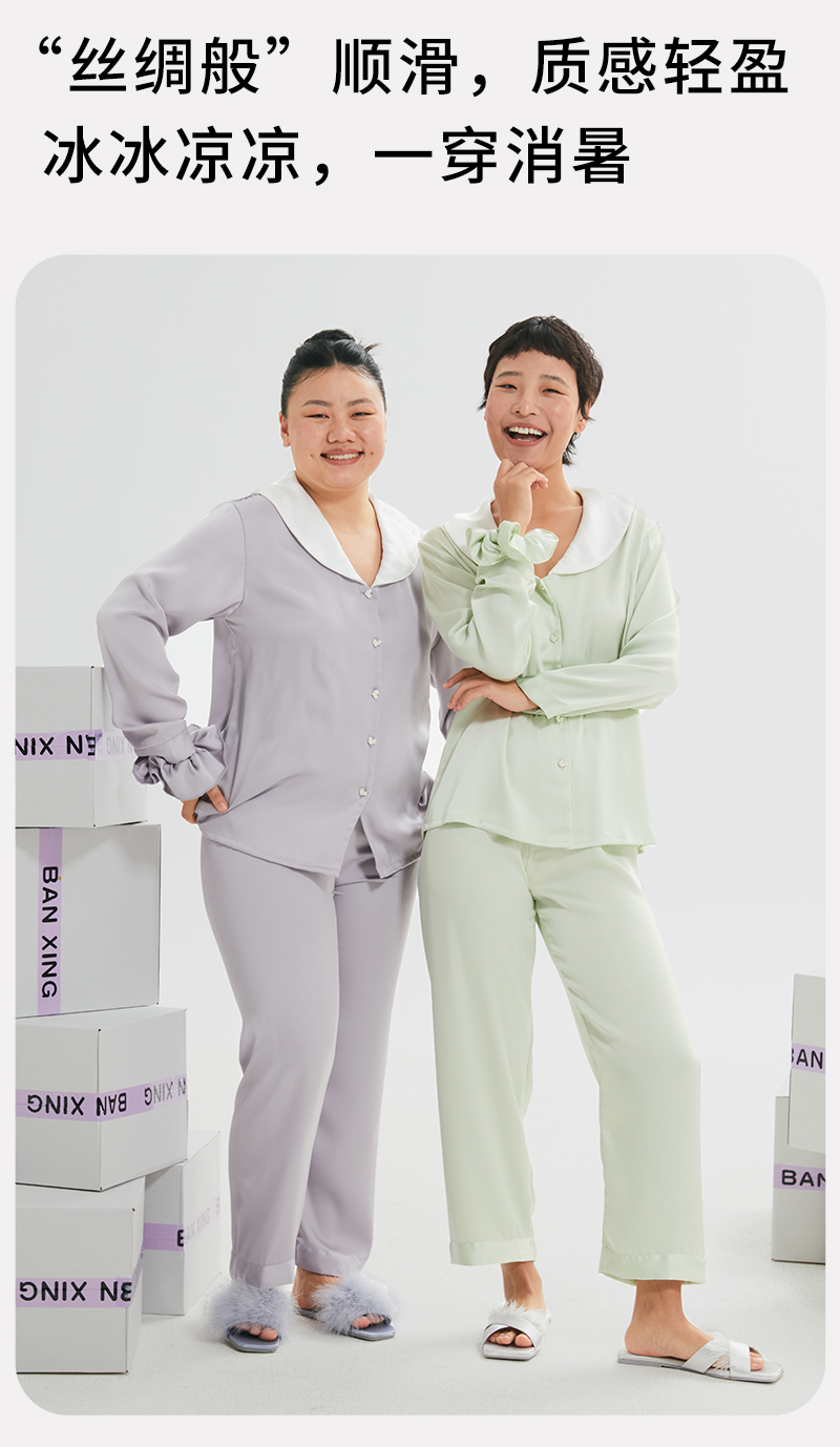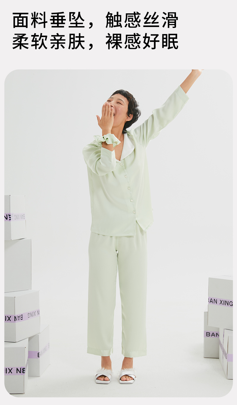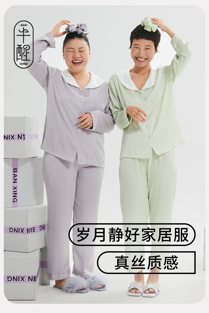 半醒岁月静好家居服 真丝质感清凉舒爽 SW013