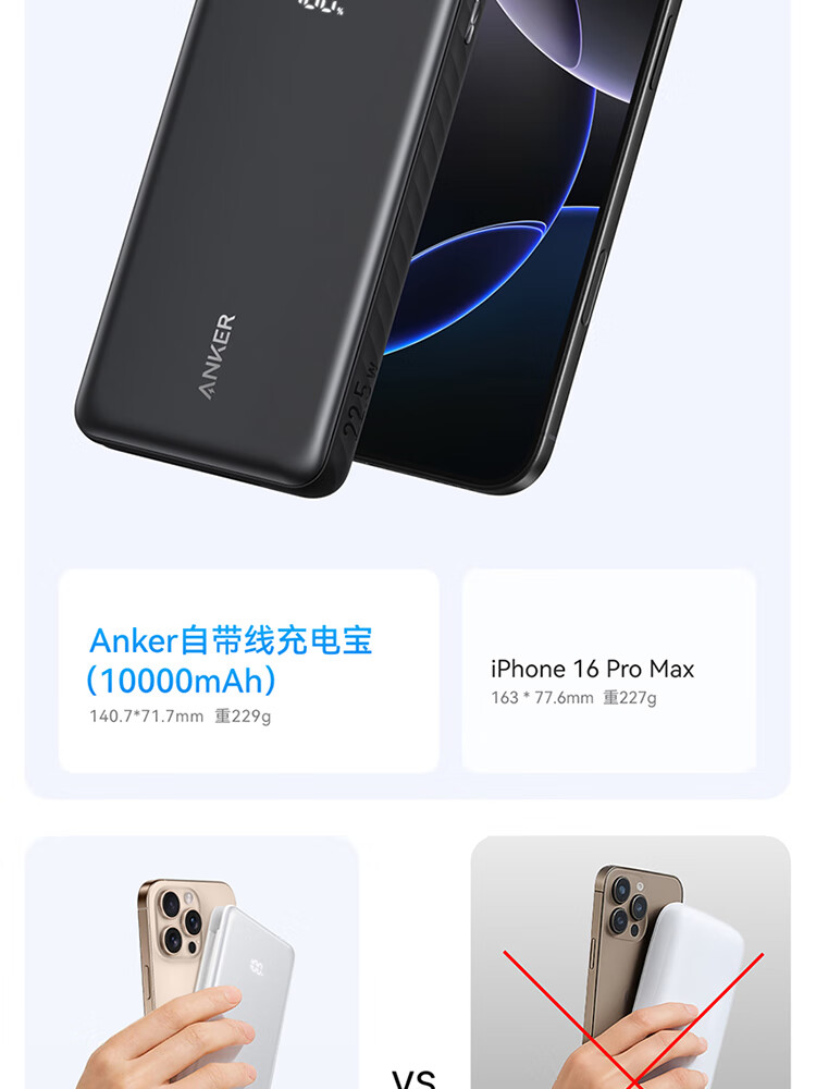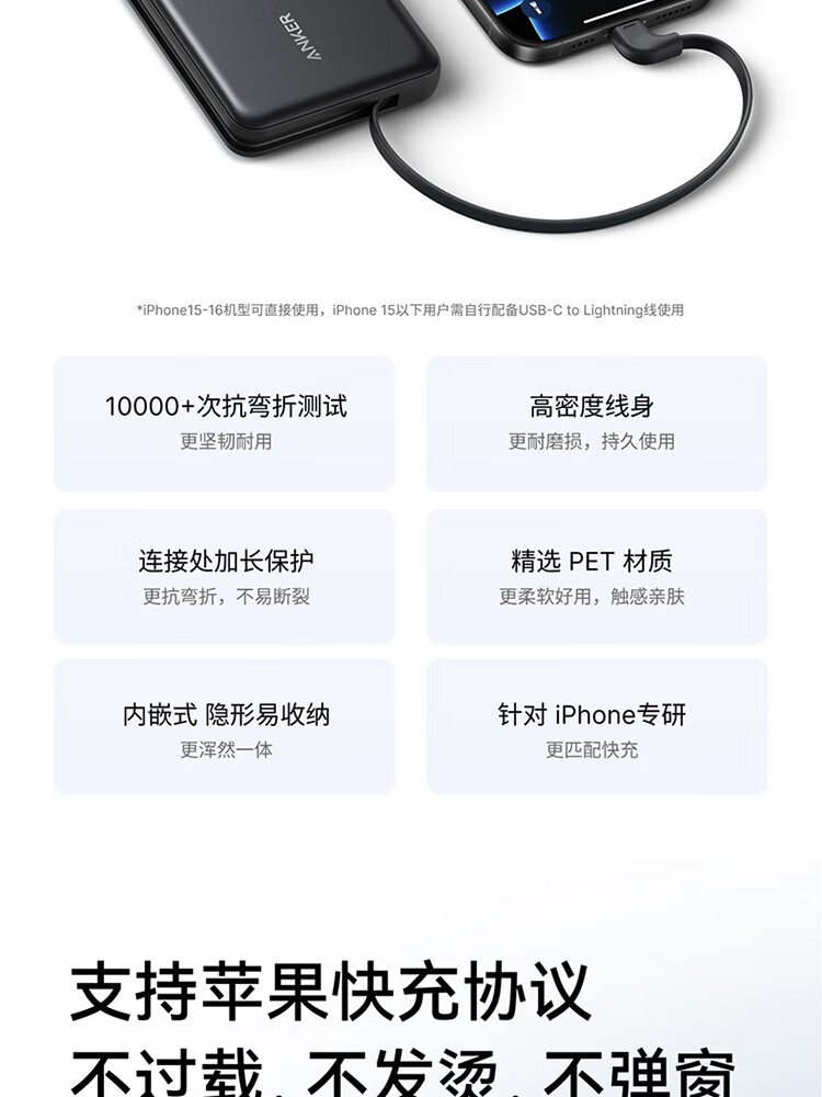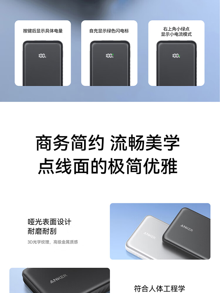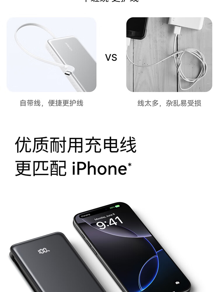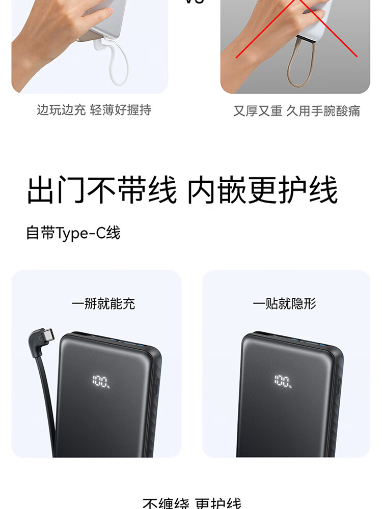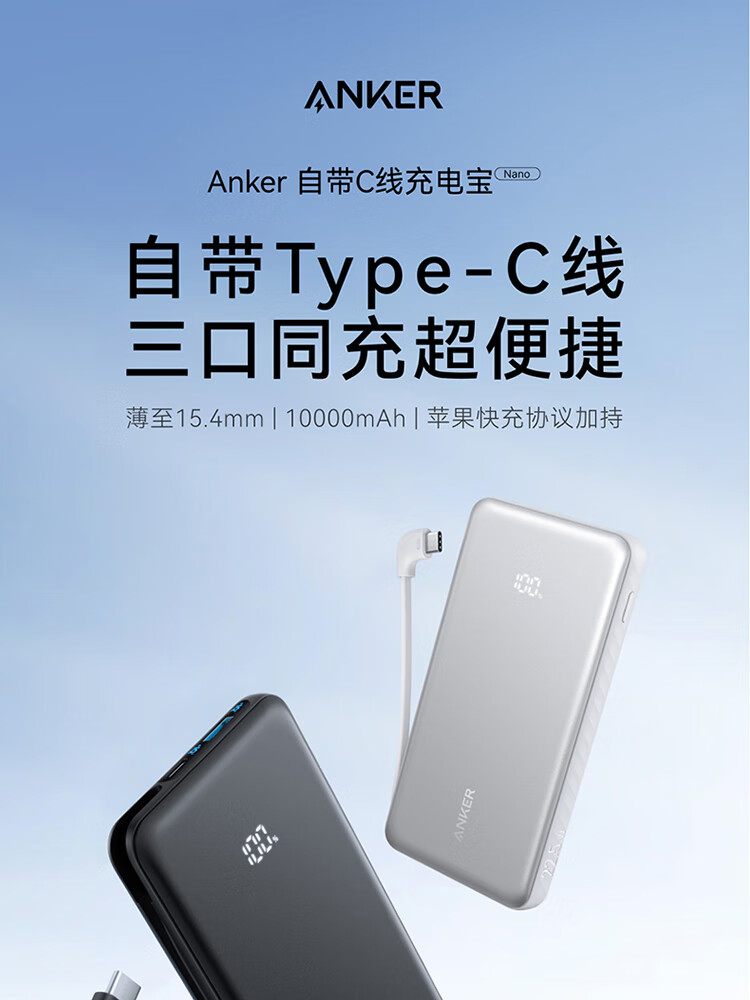 ANKER安克自带type-c线充电宝快充 移动电源 黑色 110D