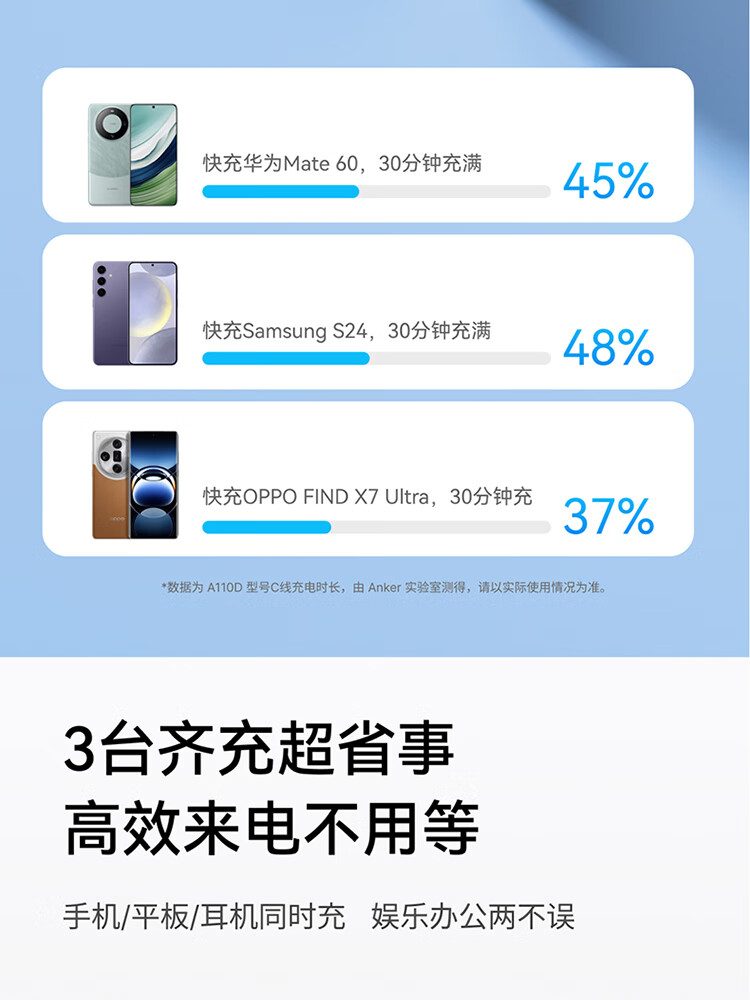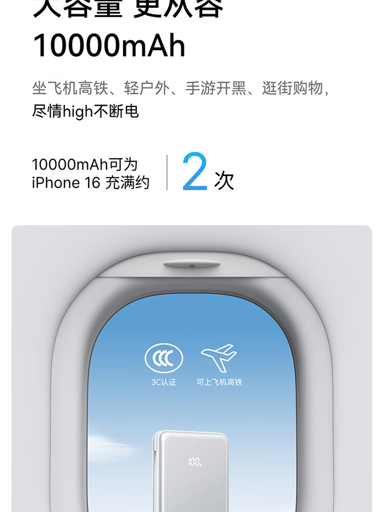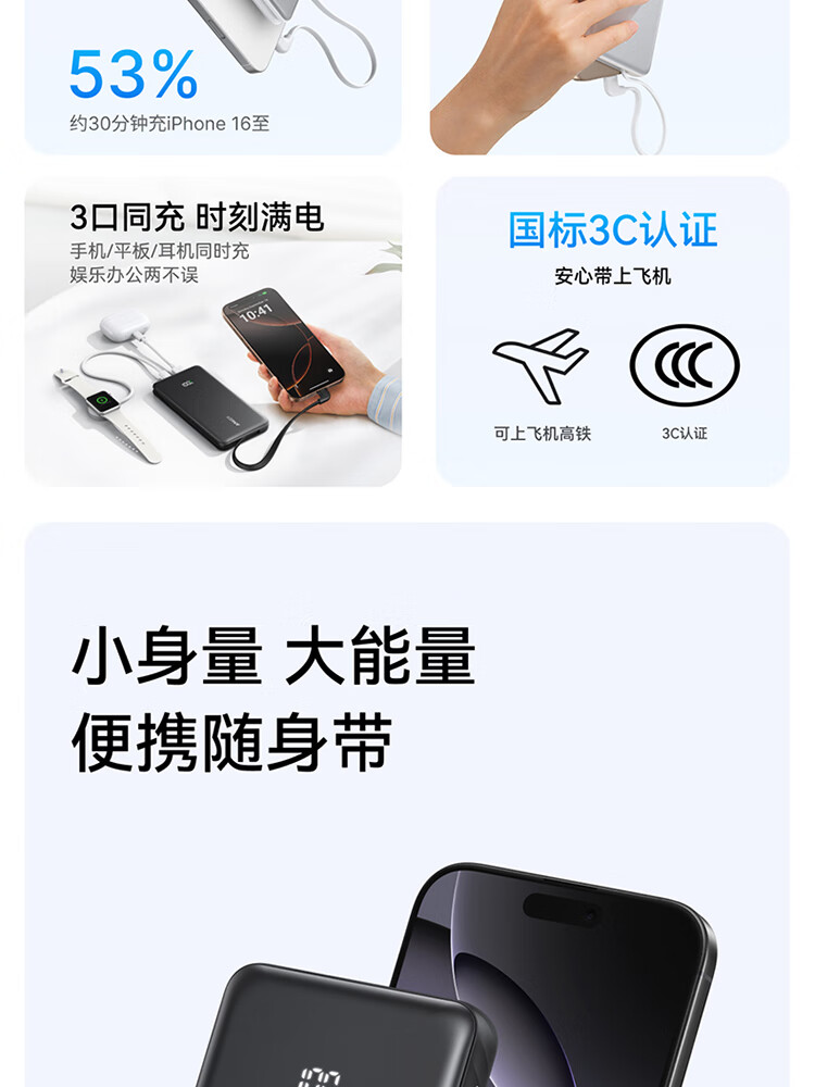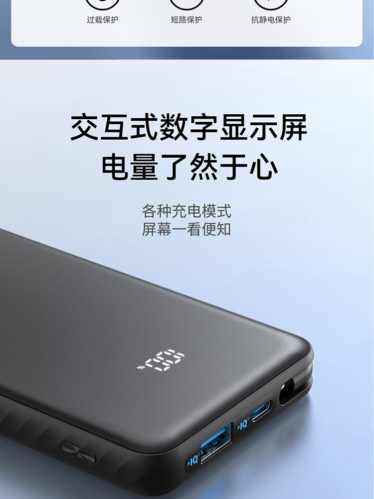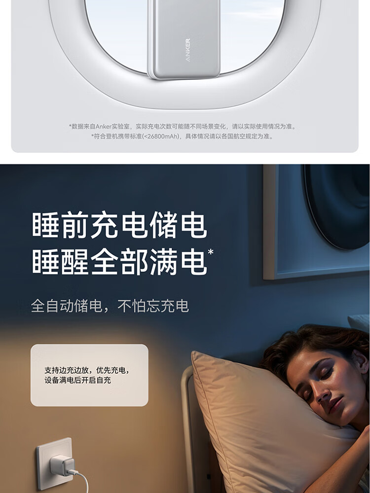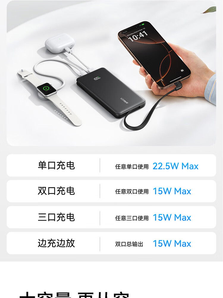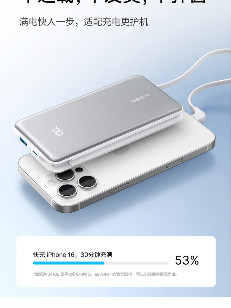 ANKER安克自带type-c线充电宝快充 移动电源 黑色 110D