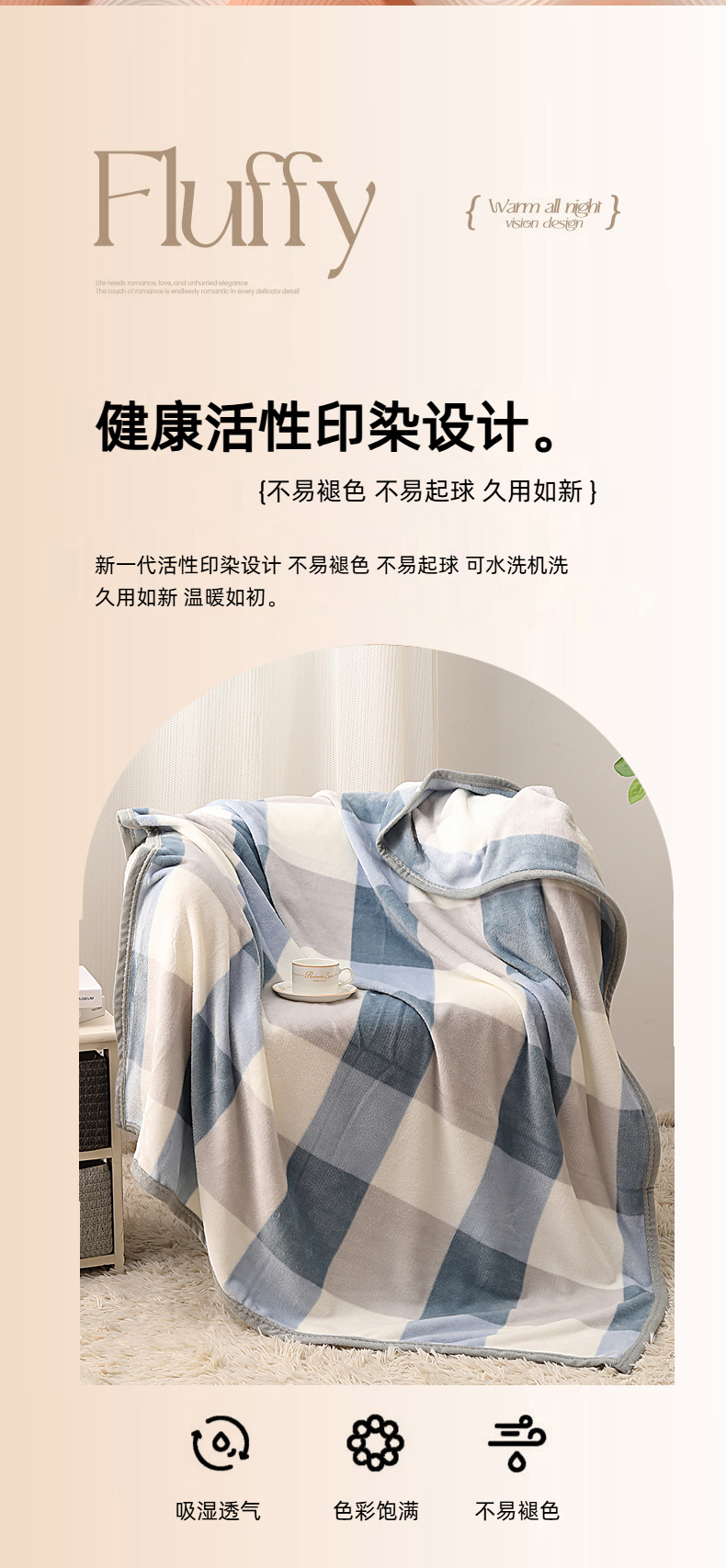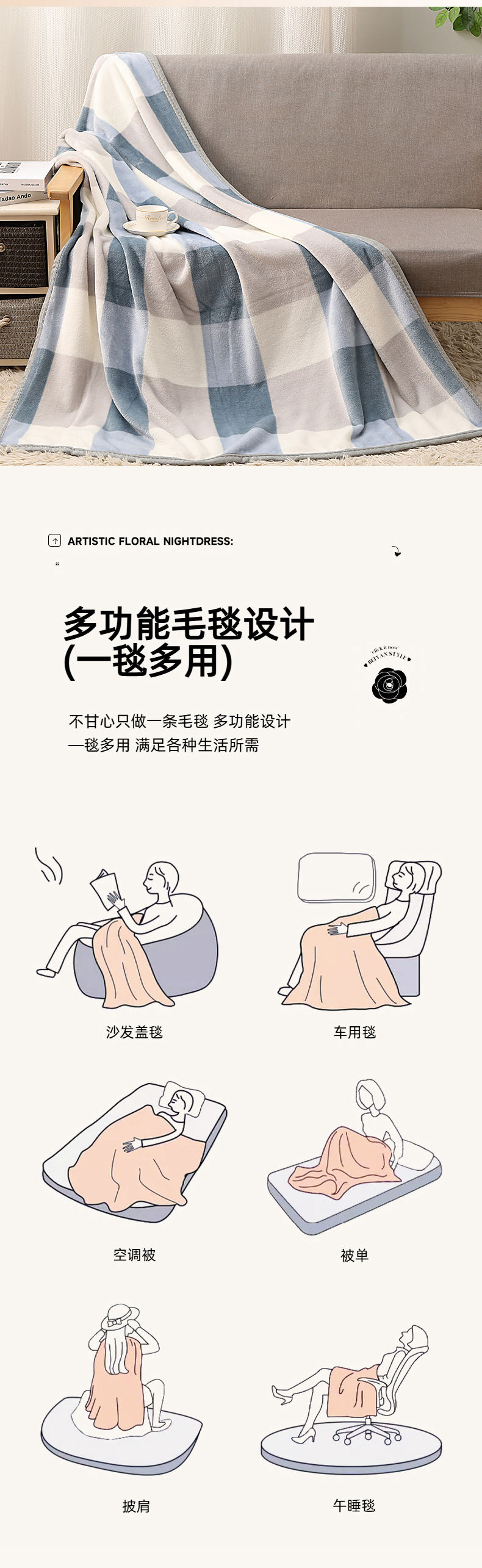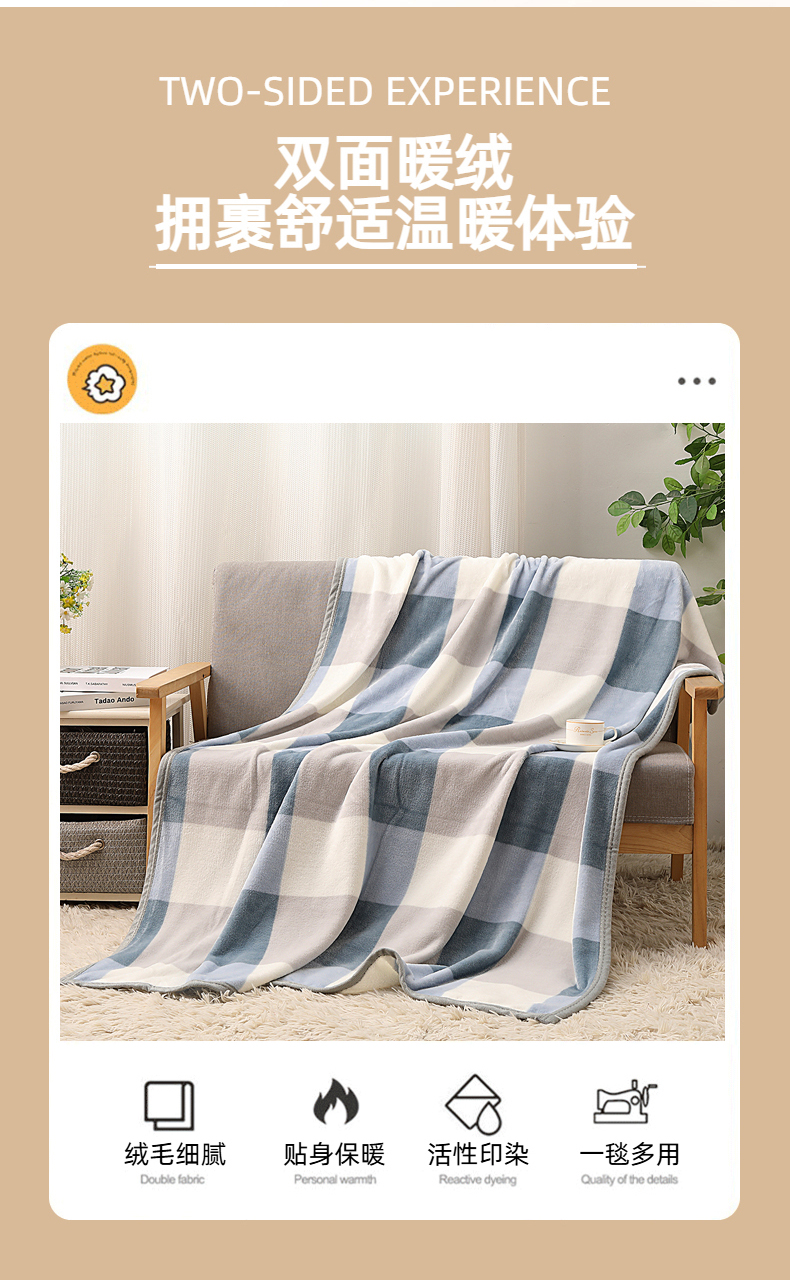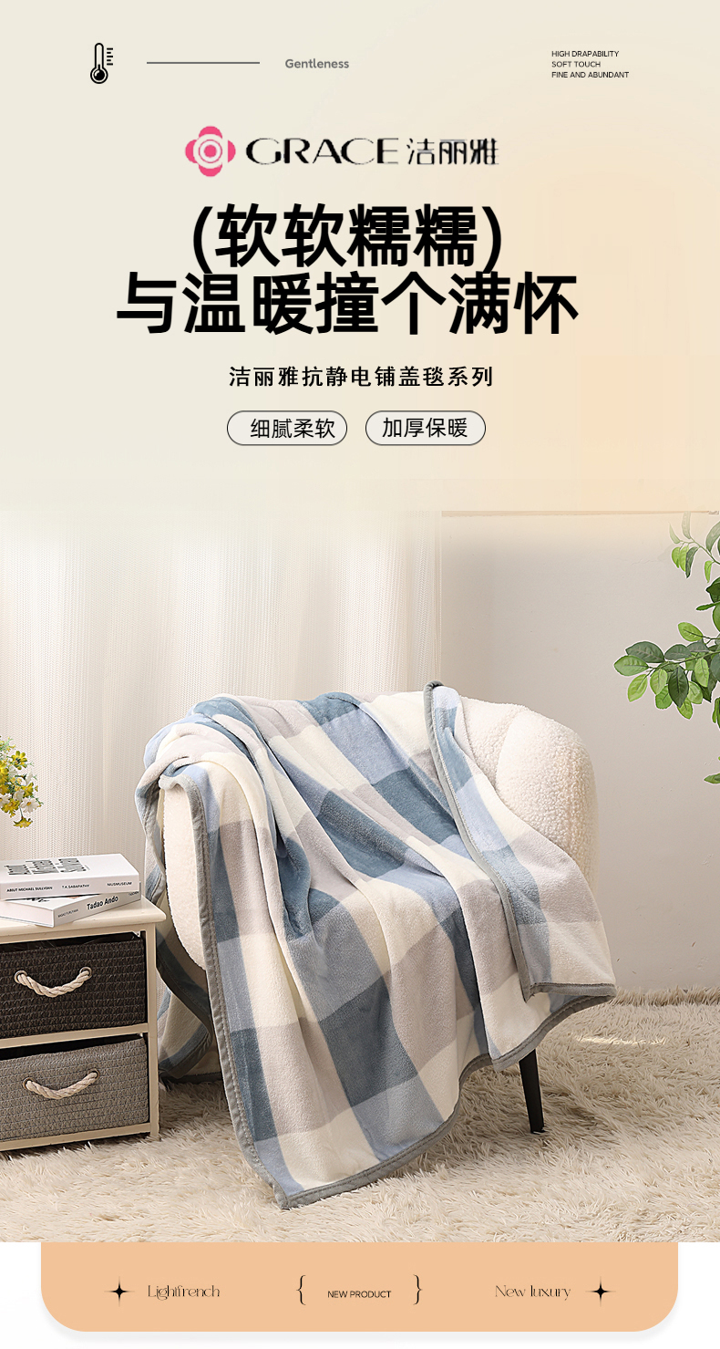 洁丽雅(Grace)蓝调.柔软亲肤办公室休闲盖毯JLY25101