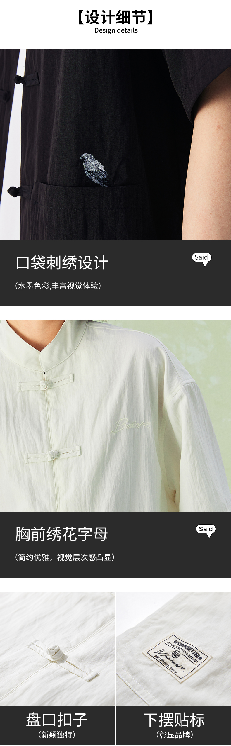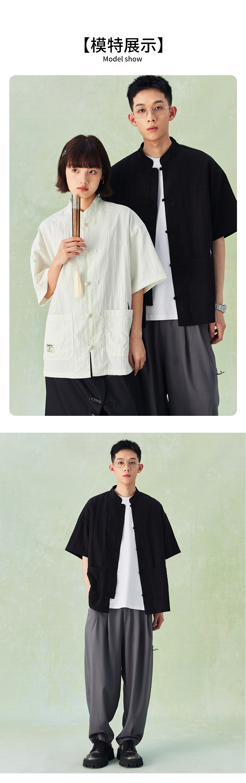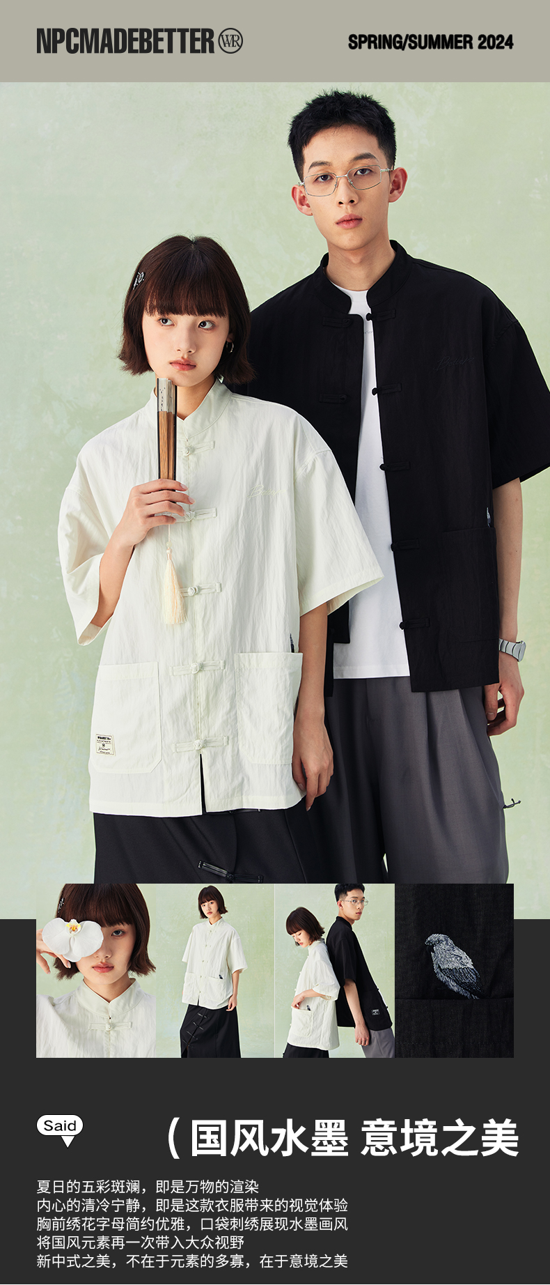 NPC潮牌新中式盘扣刺绣短袖衬衫男潮流中国风慵懒宽松NP44SH09 J