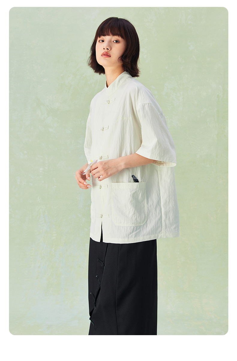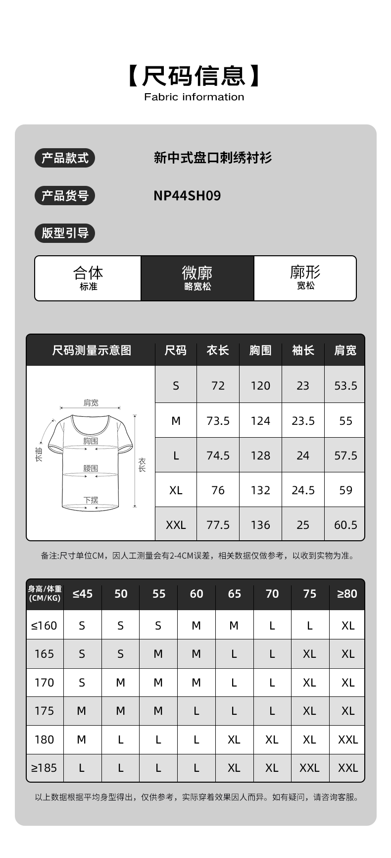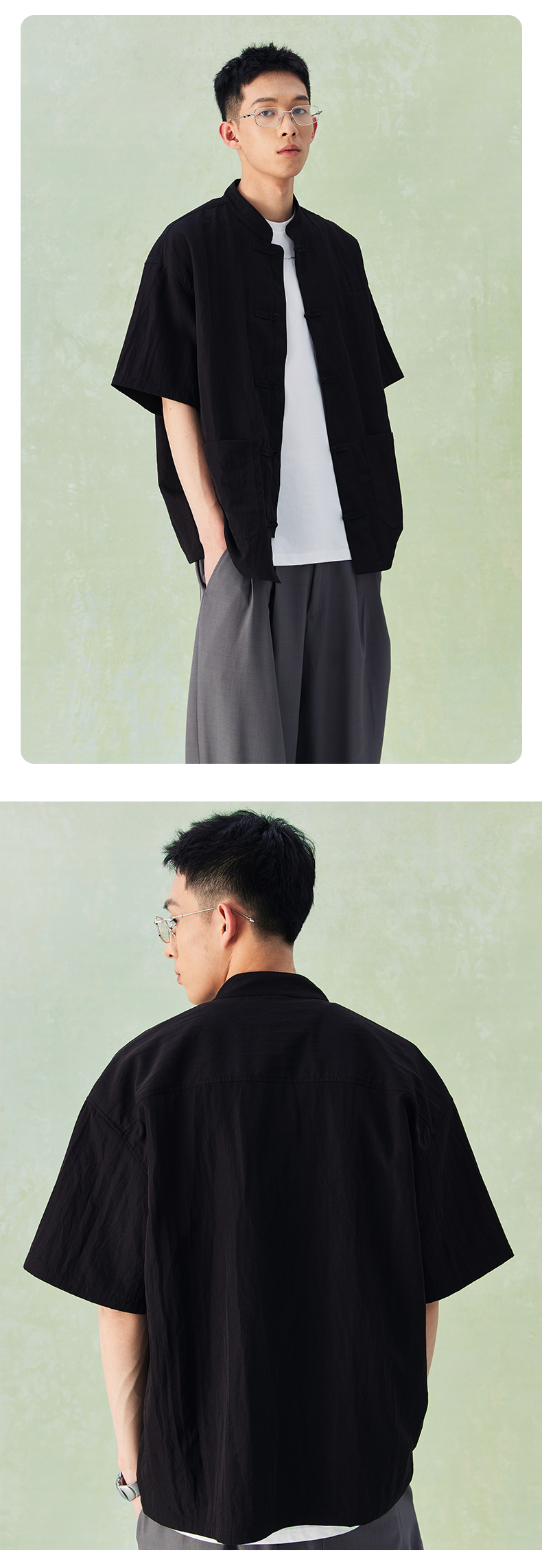 NPC潮牌新中式盘扣刺绣短袖衬衫男潮流中国风慵懒宽松NP44SH09 J