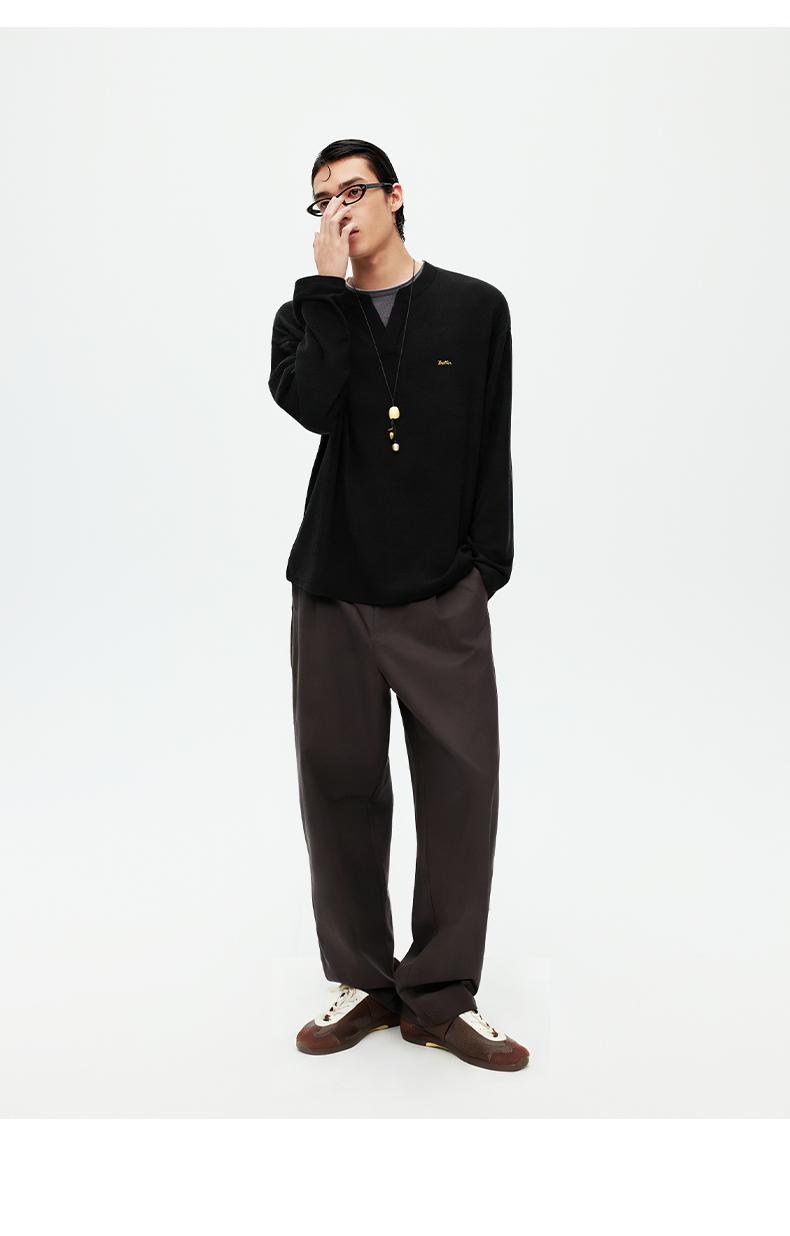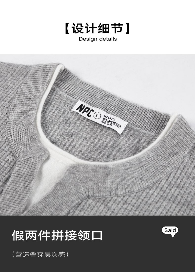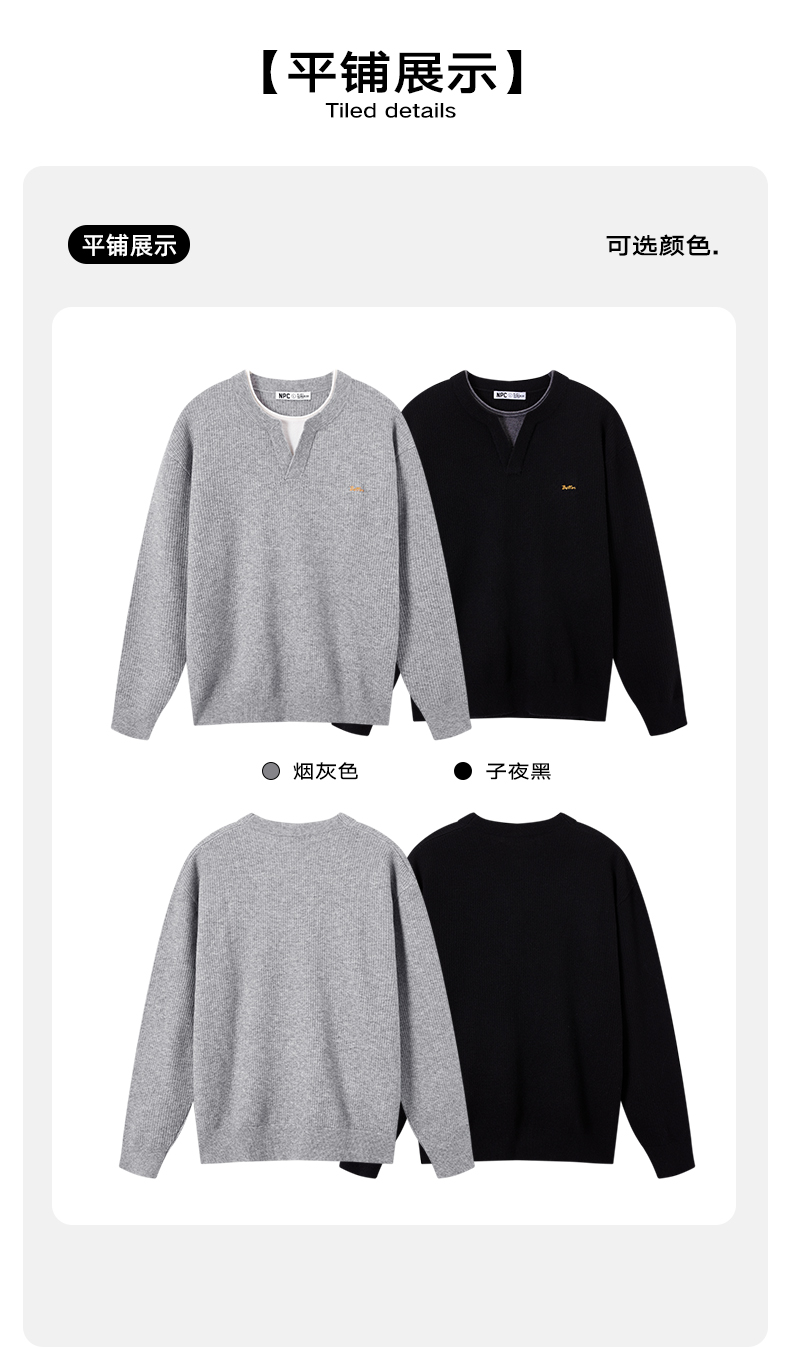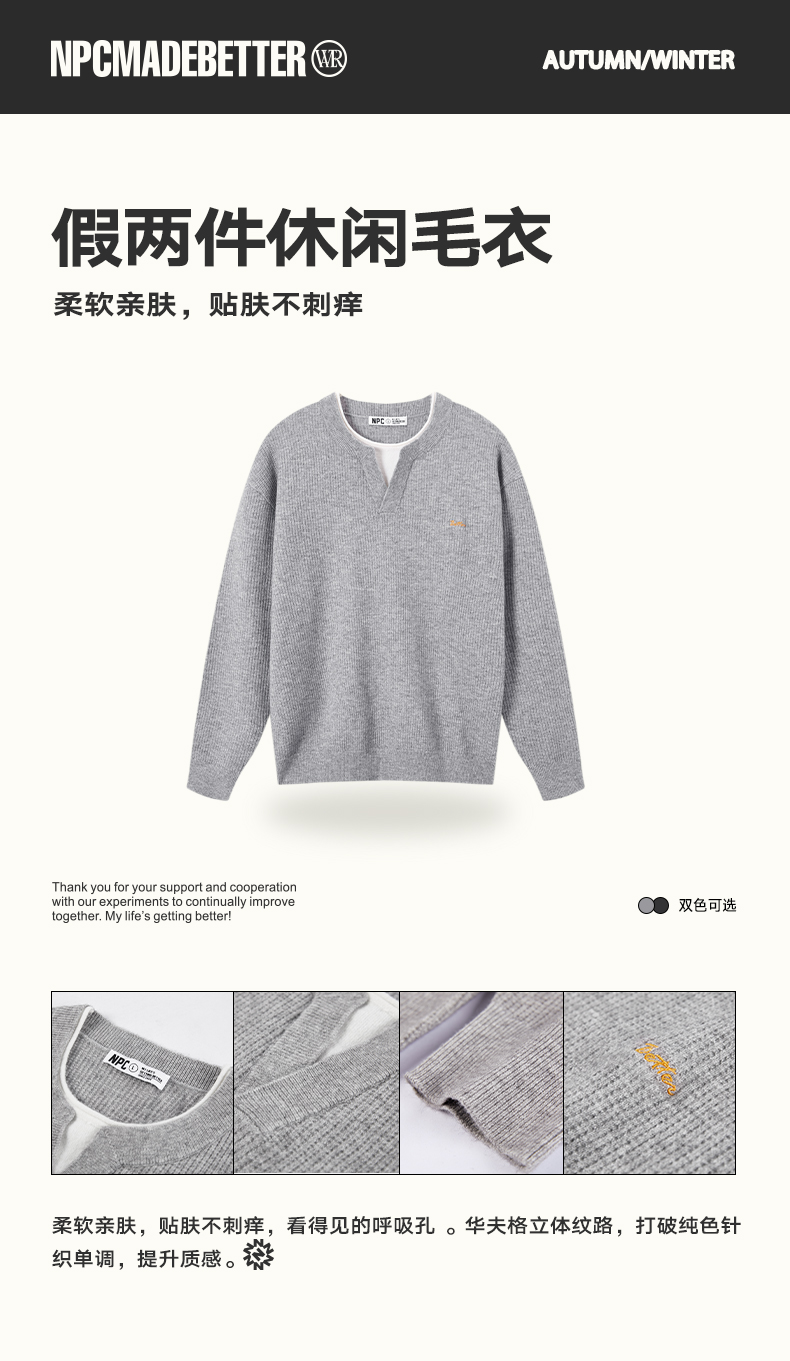 NPC潮牌撞色假二件针织衫肌理华夫格老钱风百搭潮流款NP61SW08