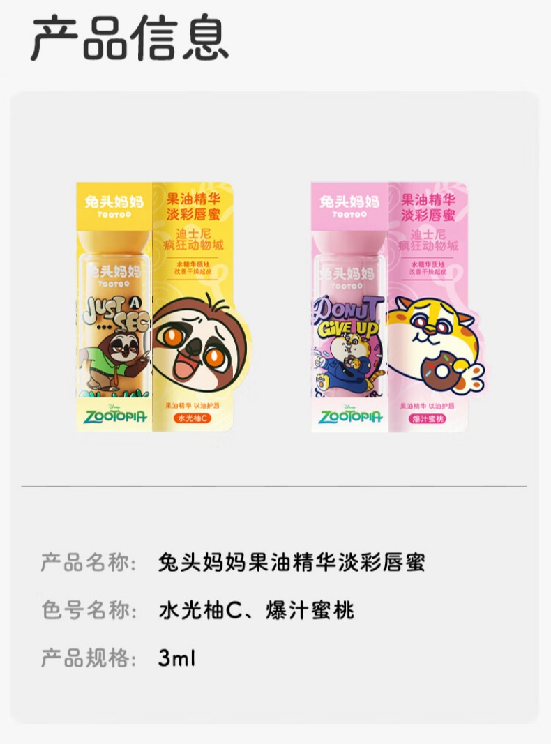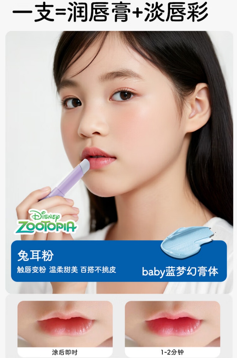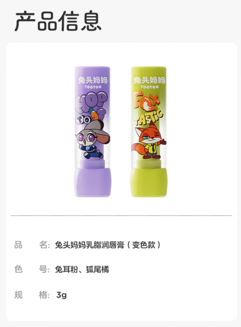【迪士尼】兔头妈妈乳脂润唇膏3g(绿变橘)(尼克橘)+【迪士尼】兔头妈妈果油精华淡彩唇蜜3ml (橘粉)(闪电)