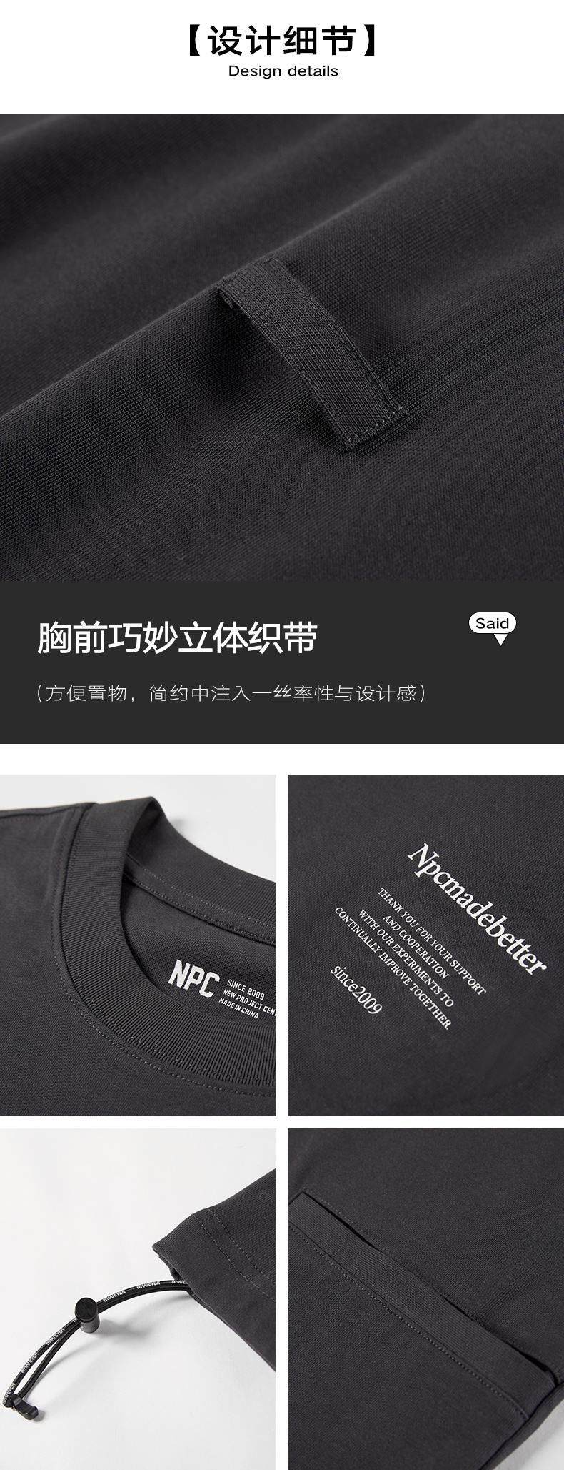 NPC潮牌胸前小织带100%棉短袖T恤男简约舒适字母印花NP55TE71
