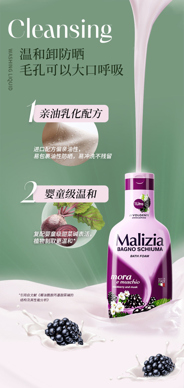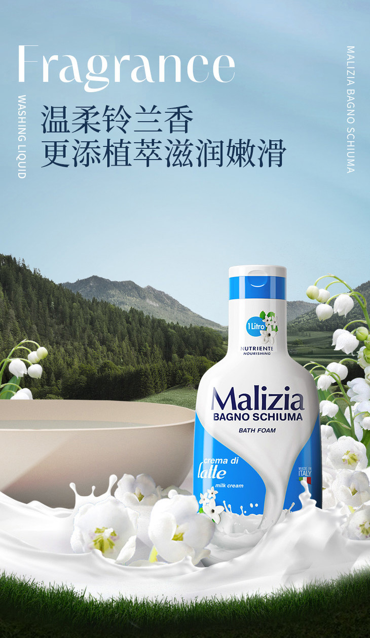 Malizia玛莉吉亚是意大利top日用品牌,62年专注身体护理,提倡肌肤和气质的双重提升,让普通人的日常洗护更加美好。所有沐浴露坚持只在意大利米兰弟一大厂生产,是被欧洲化妆品协会认证的“优质工厂”,也代表了欧洲蕞高生产标准和产品品质,洗的舒服又放心!拥有10年经验的资深调香师亲研,意大利奢侈香水同源,不会很齁甜,像自然的体香,巨高级!在意大利就非常受欢迎,也畅销全球100多个国家,还赞助了世界杯和全球博览会。国内同样一片种草,李佳琪推荐,线下商超也都有上,价格是79哦!所以真的有很划算!