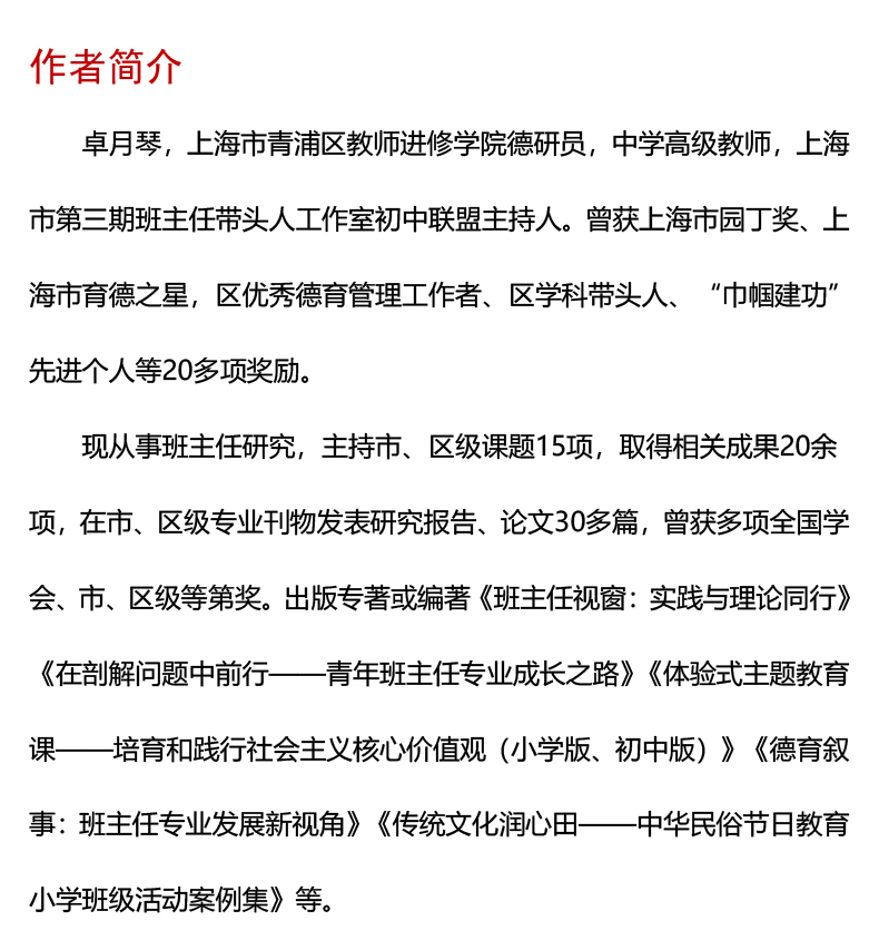 本书字里行间流露出以科学的爱管理班级的思想,以爱唤起学生对知识的渴望,拨亮学生前行的路;以智慧点亮读者心头的火花。