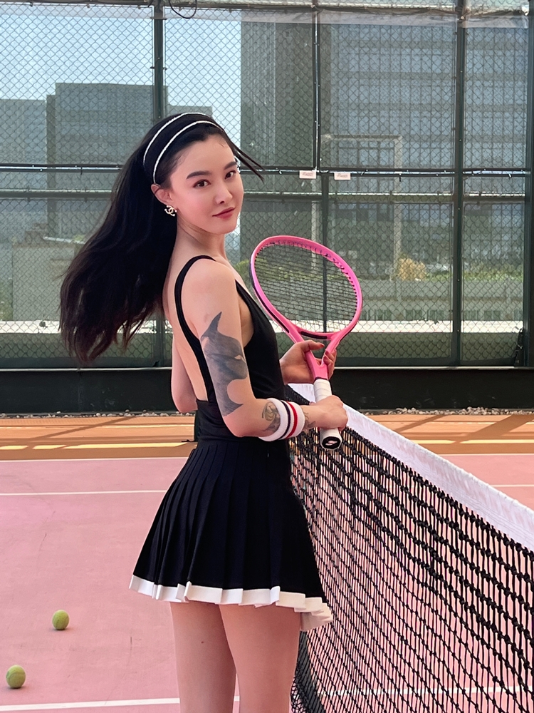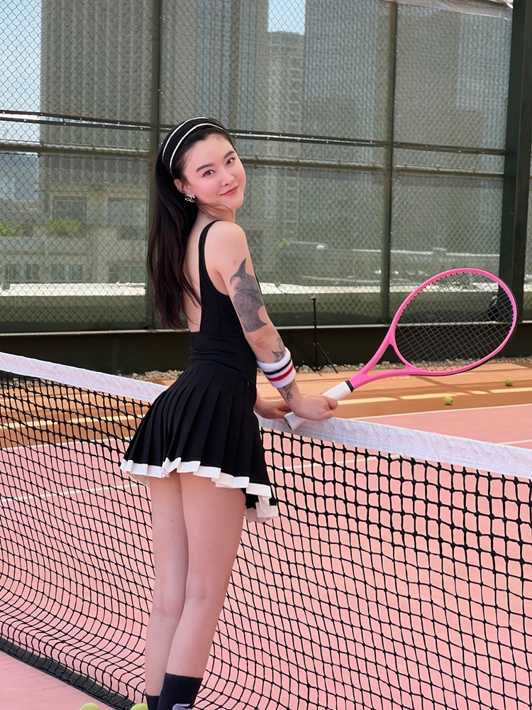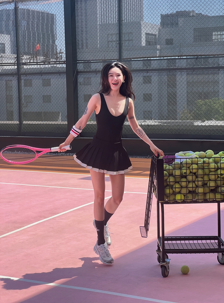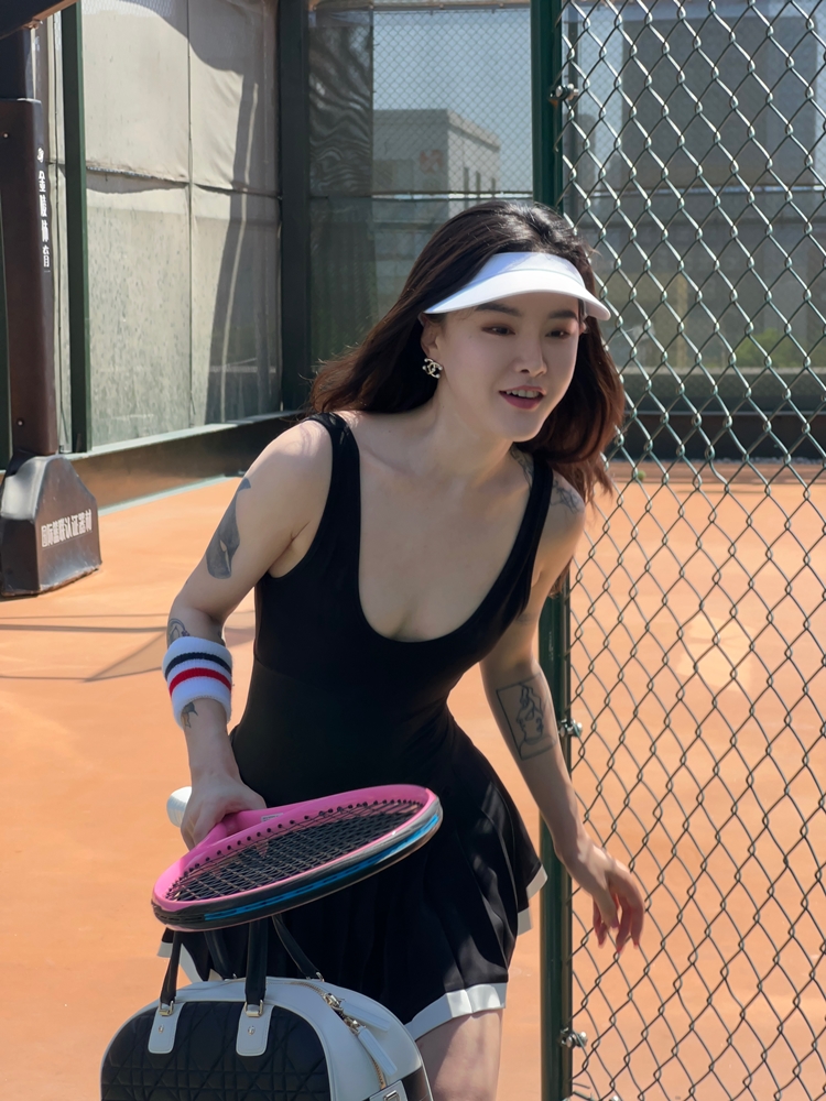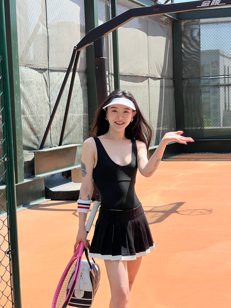 复古鳄鱼绿运动网球Polo百褶连衣裙外套