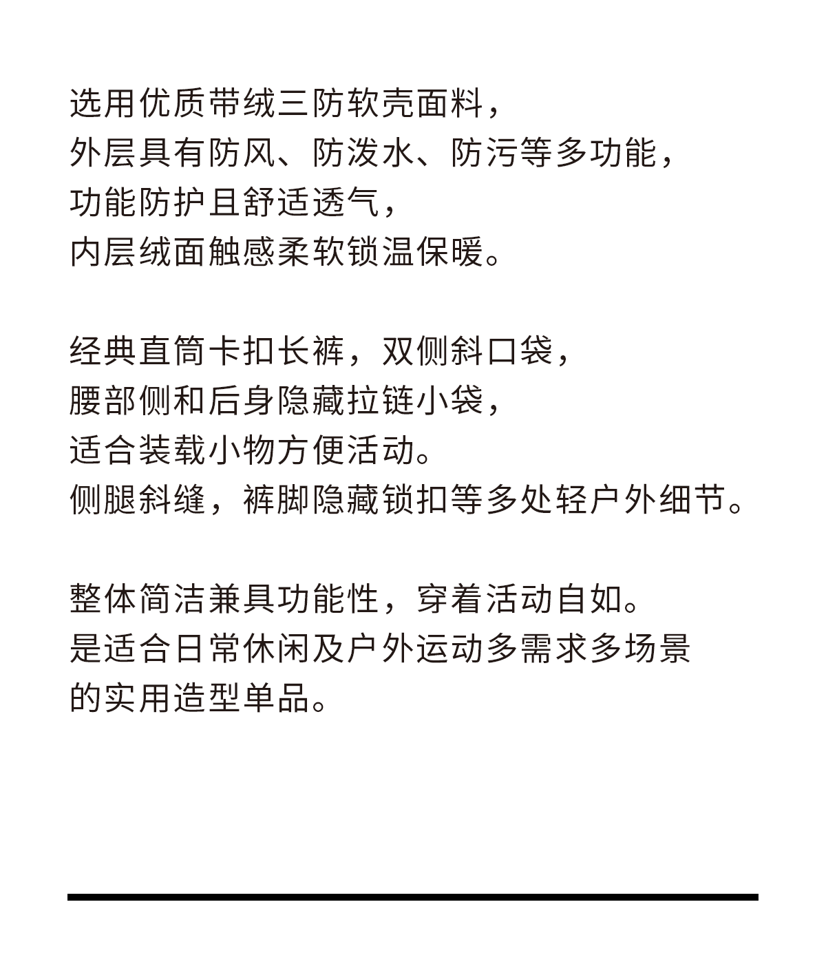 吃茶去chichaqu25户外三防防风防泼水软壳带绒长裤城市机能徒步