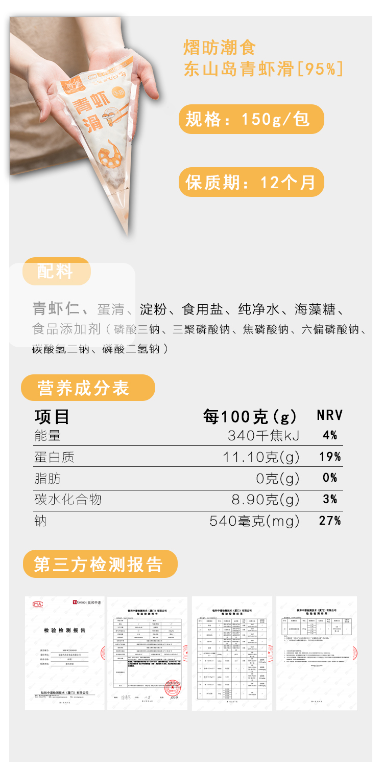 纯正东山岛青虾滑[95%虾含量]