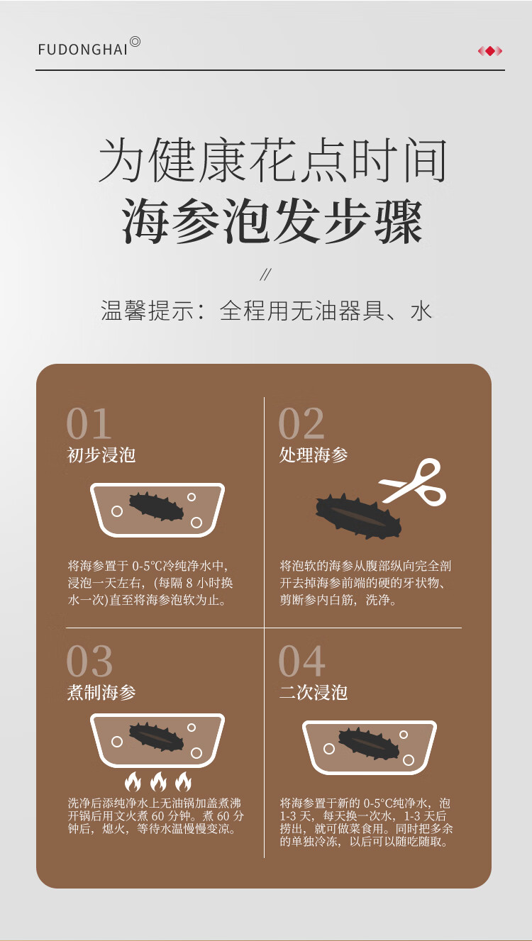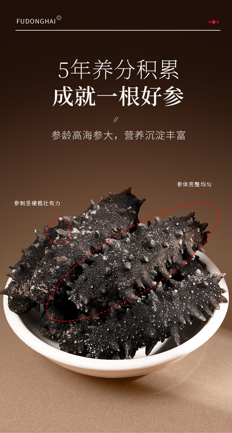 福东海 海参200克 22-28只 大连辽刺参淡干海参水产特产干货 补品送礼