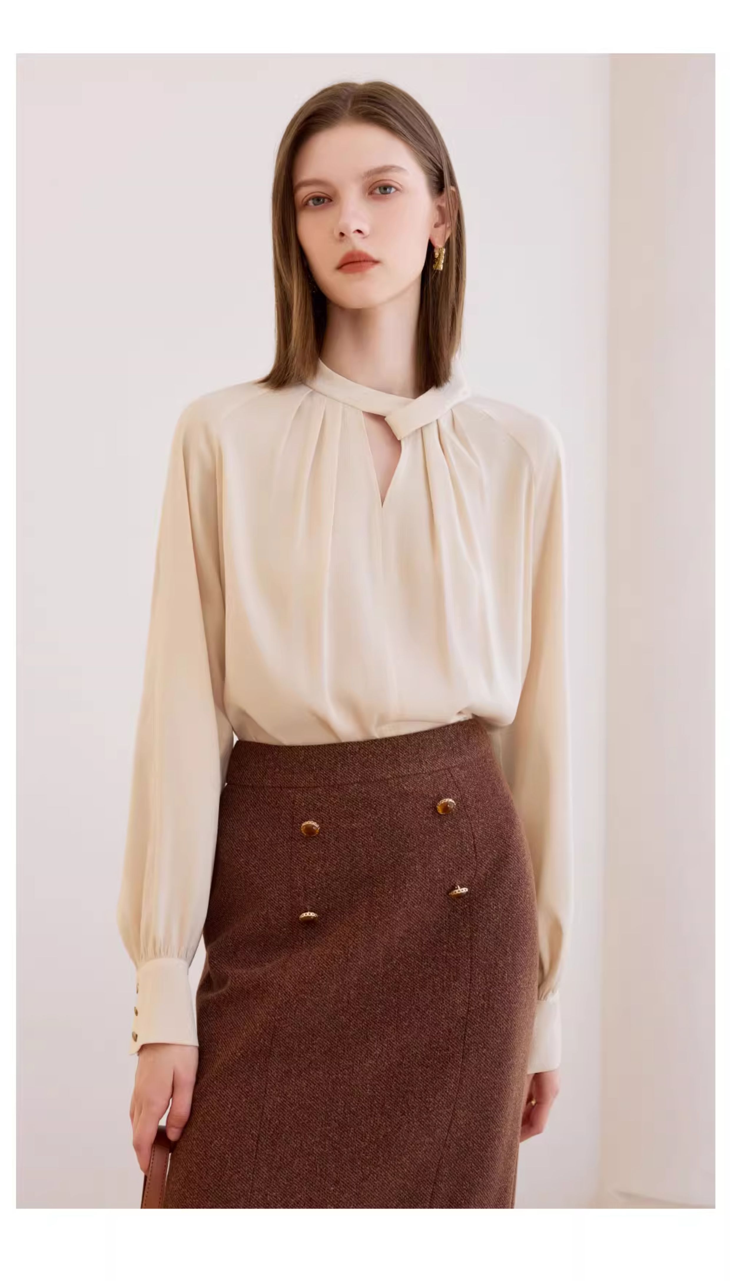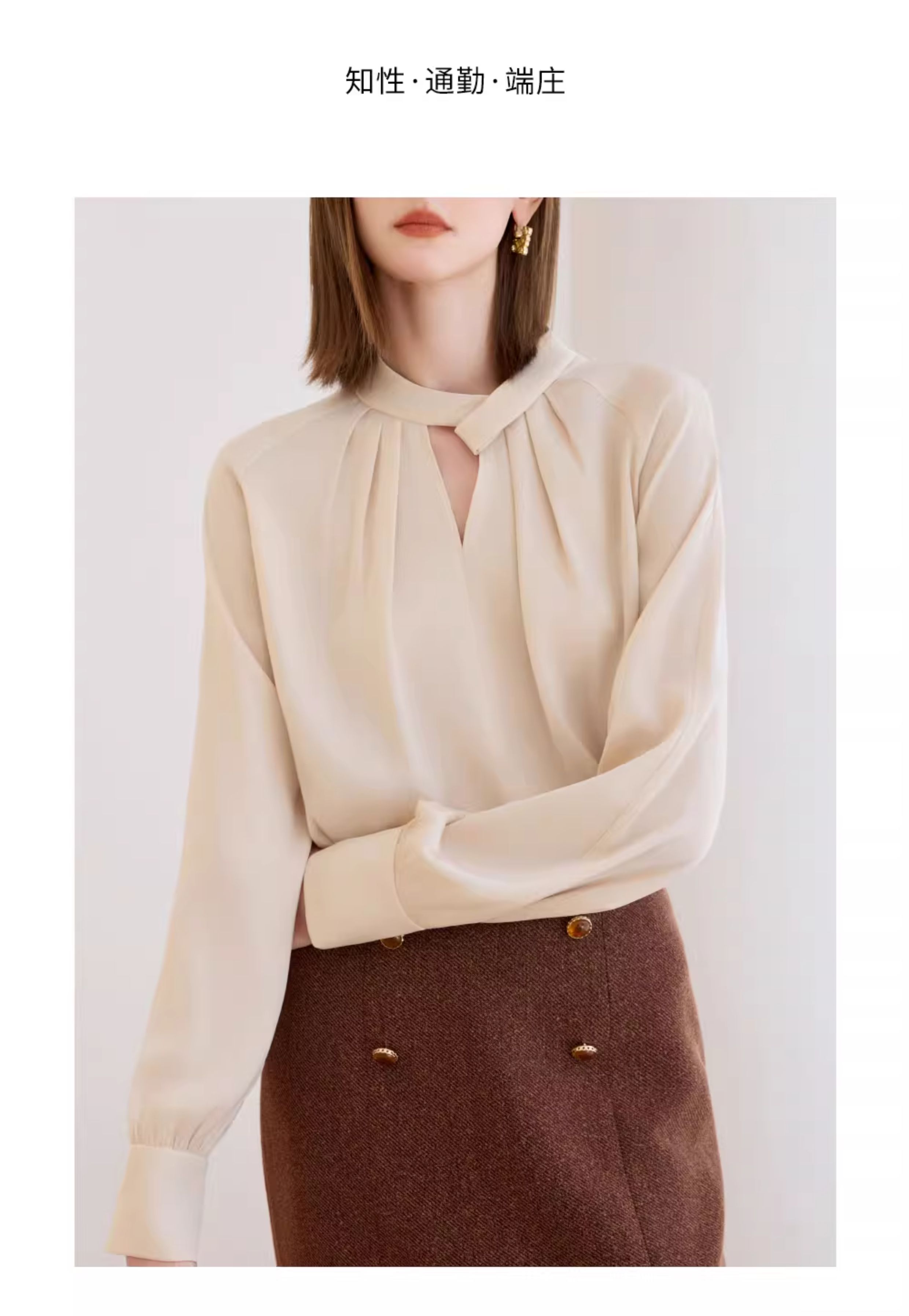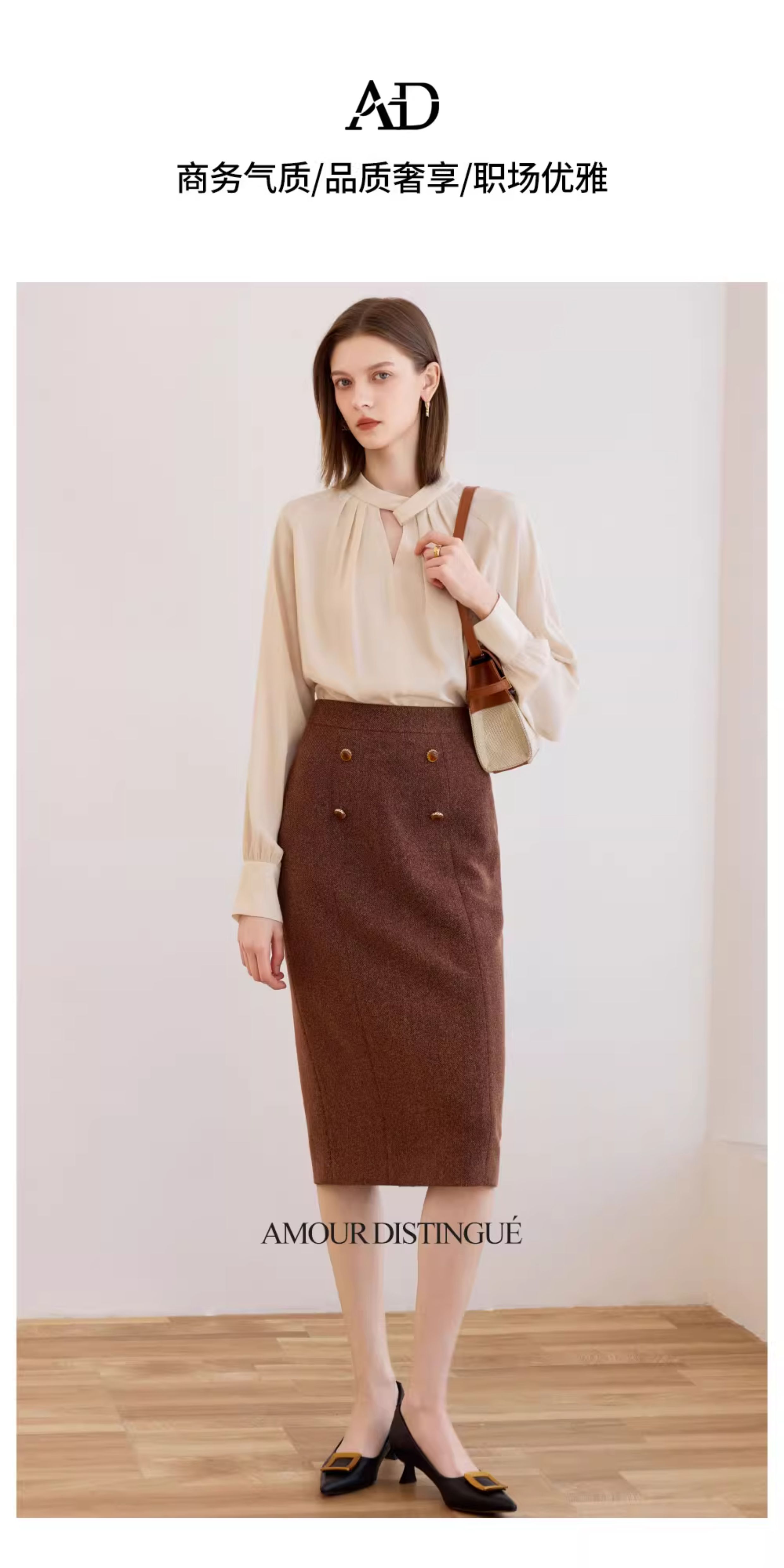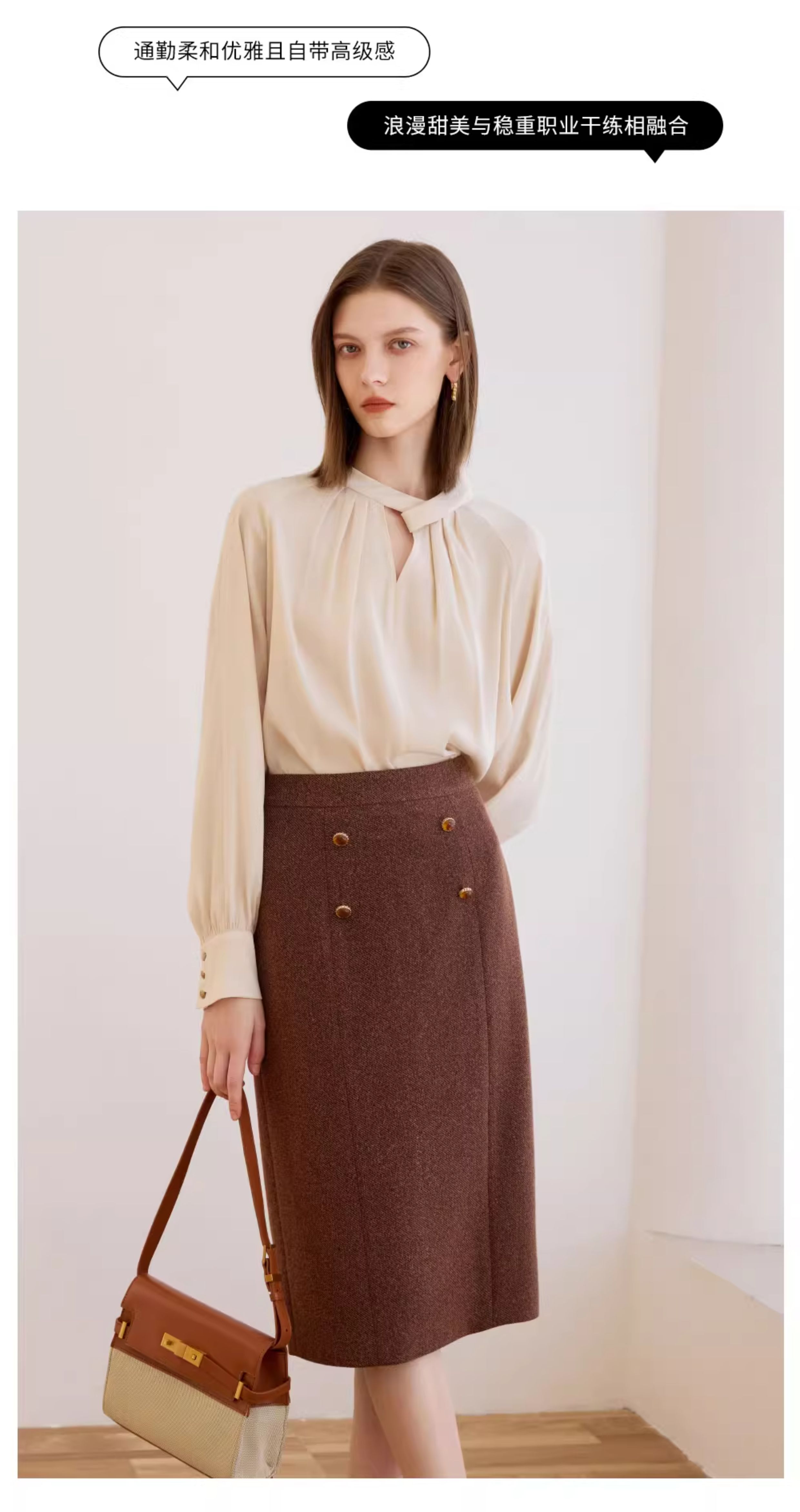 AD2025新款气质蝴蝶结杏色长袖衬衫女法式独特绝美小上衣包臀半裙