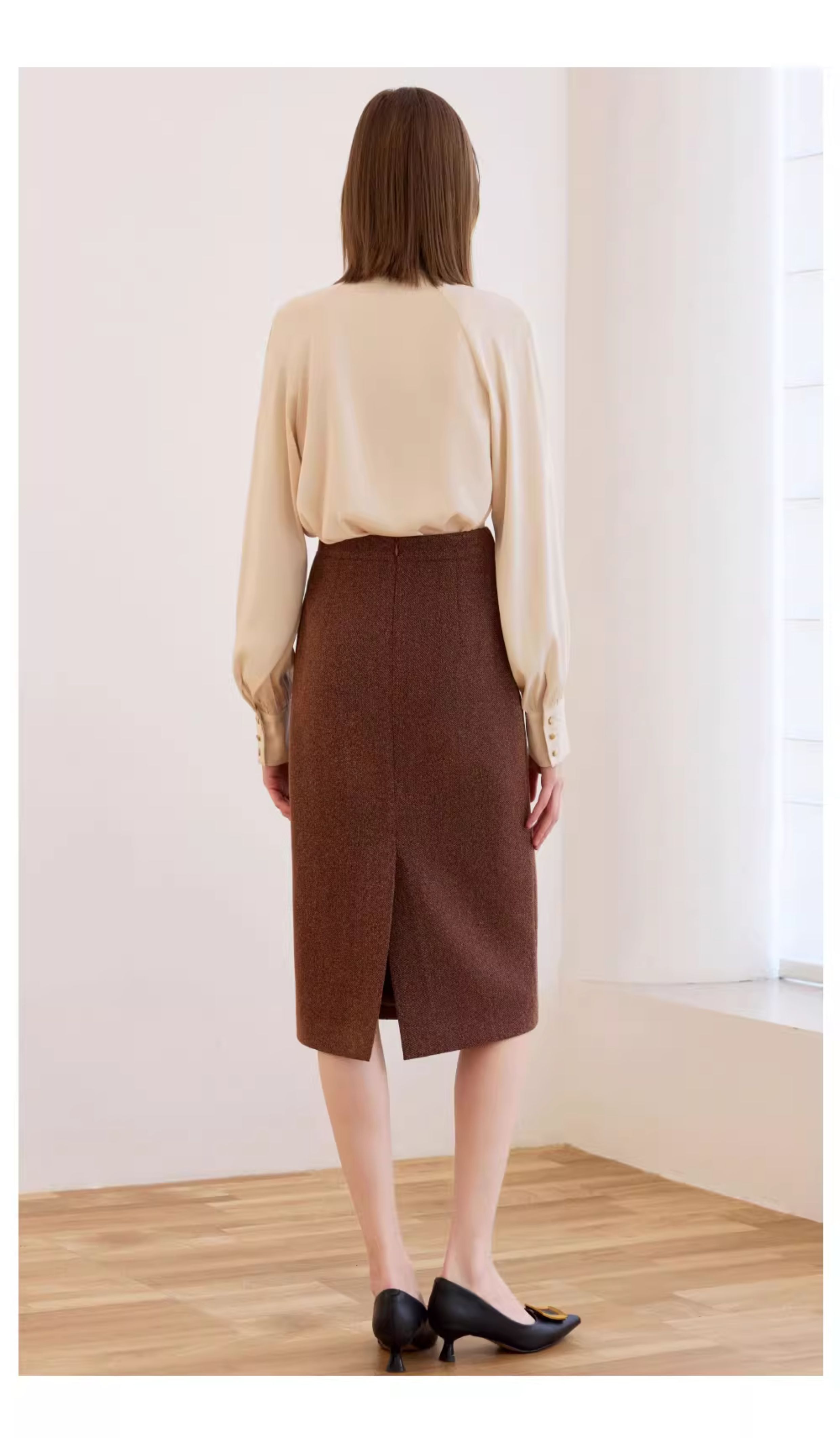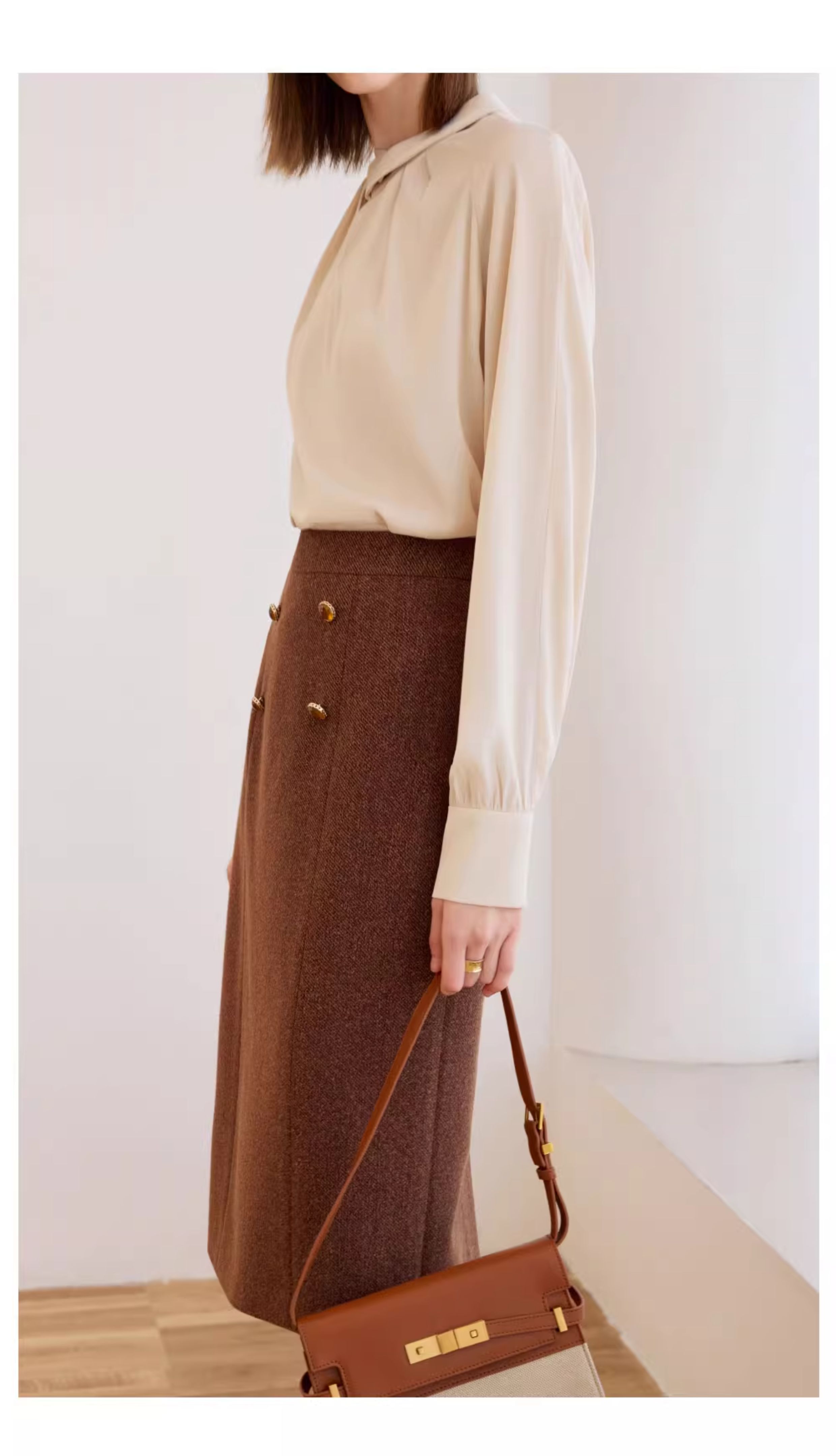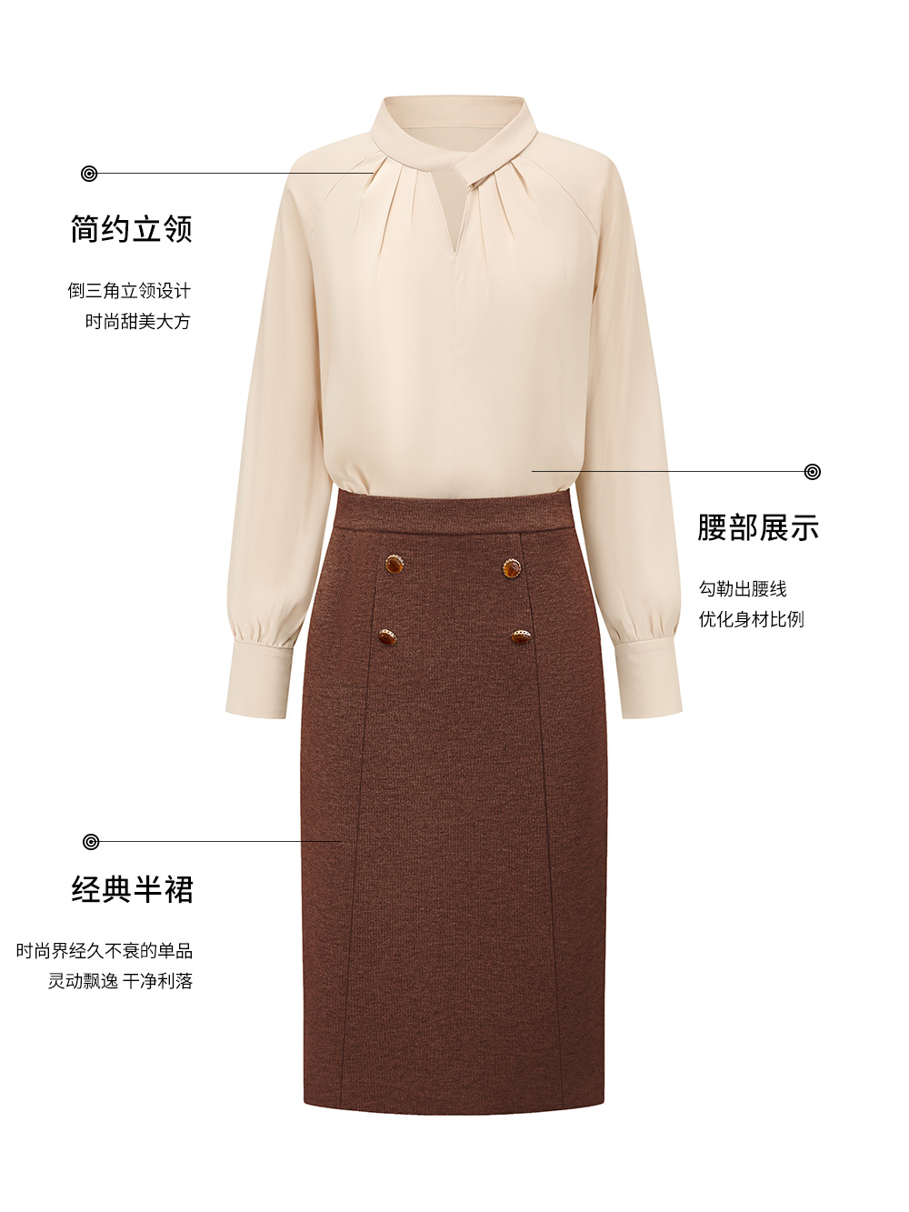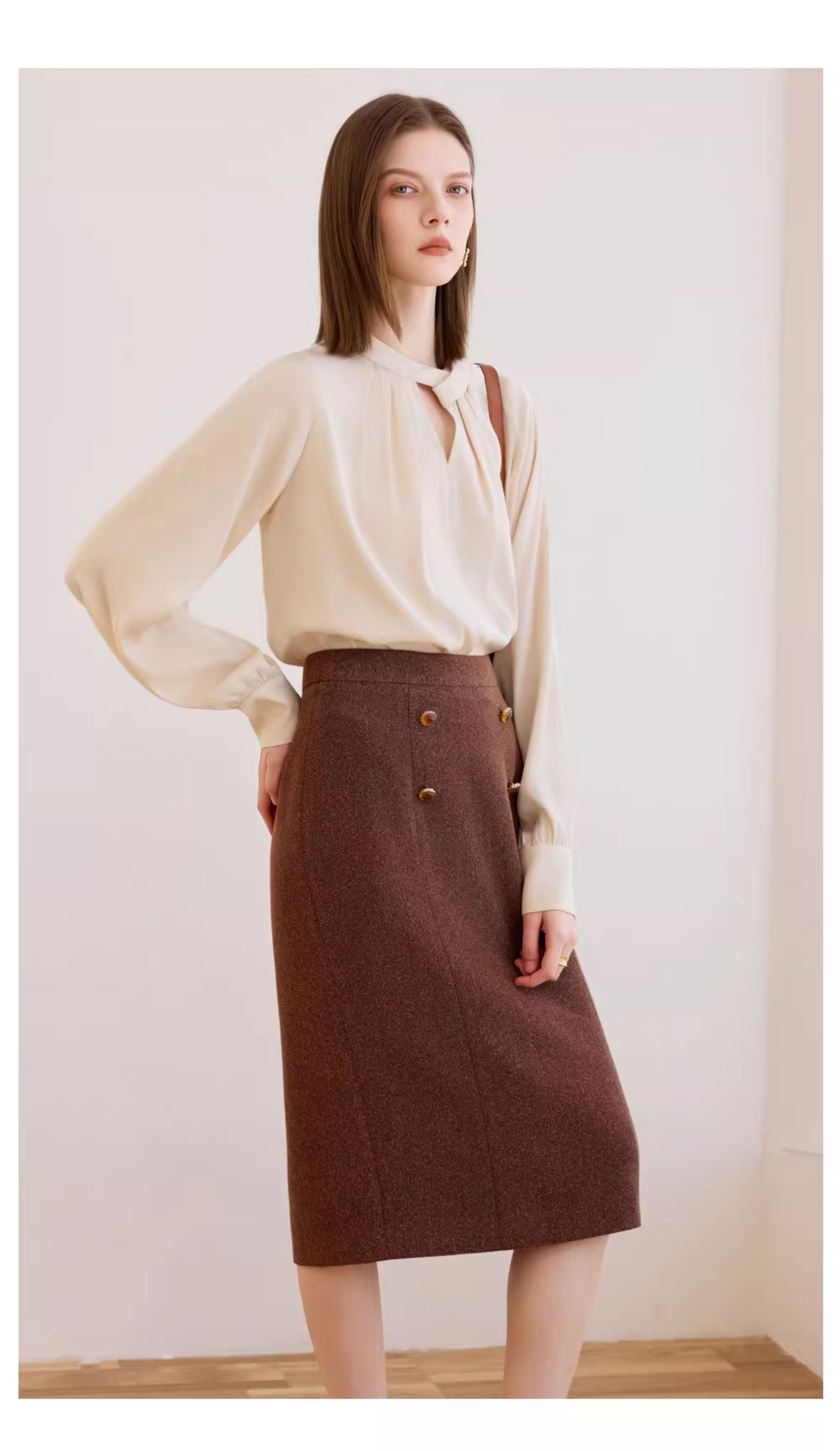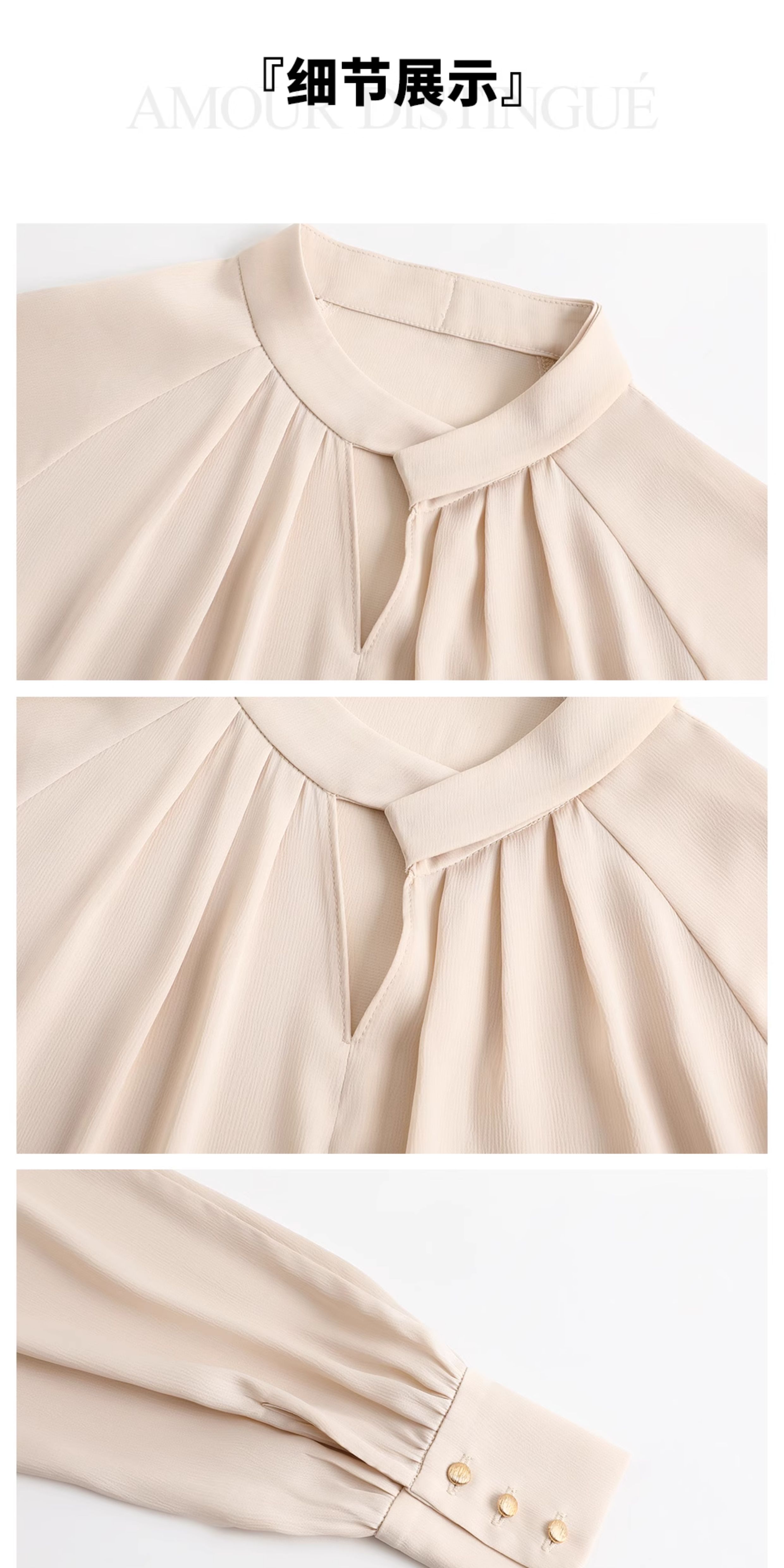 AD2025新款气质蝴蝶结杏色长袖衬衫女法式独特绝美小上衣包臀半裙