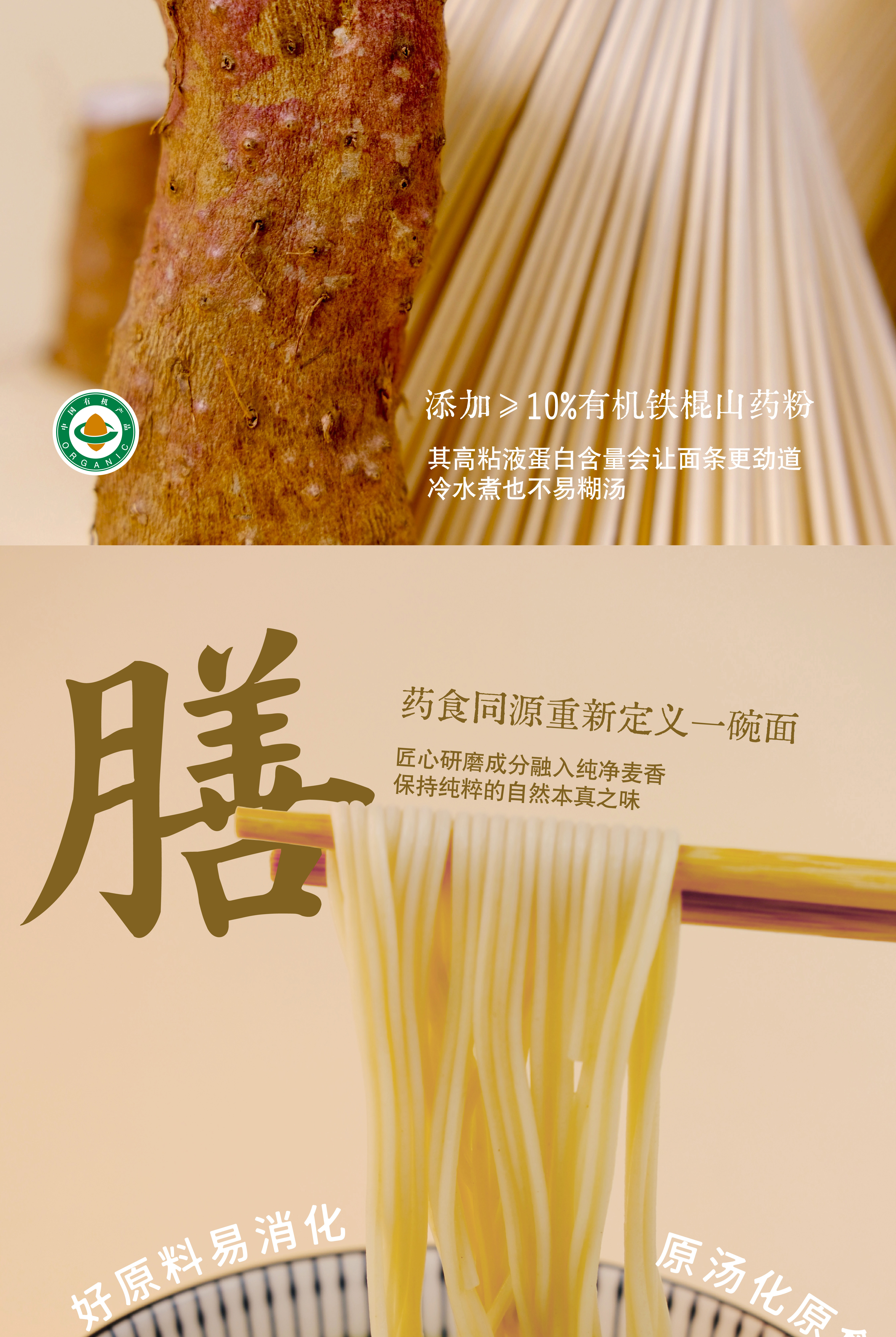 有机铁棍山药全麦素面|配料只有全麦粉、山药粉、水,300克面=270克全麦胚芽粉+30克铁棍山药粉,道地山药面,无盐无添加剂,营养又劲道。300g/盒⭐️京东快递