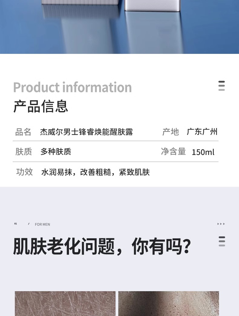 杰威尔男士爽肤水补水保湿水夏季淡纹细纹皱纹紧致润肤水焕能醒肤露脸部专用护肤品