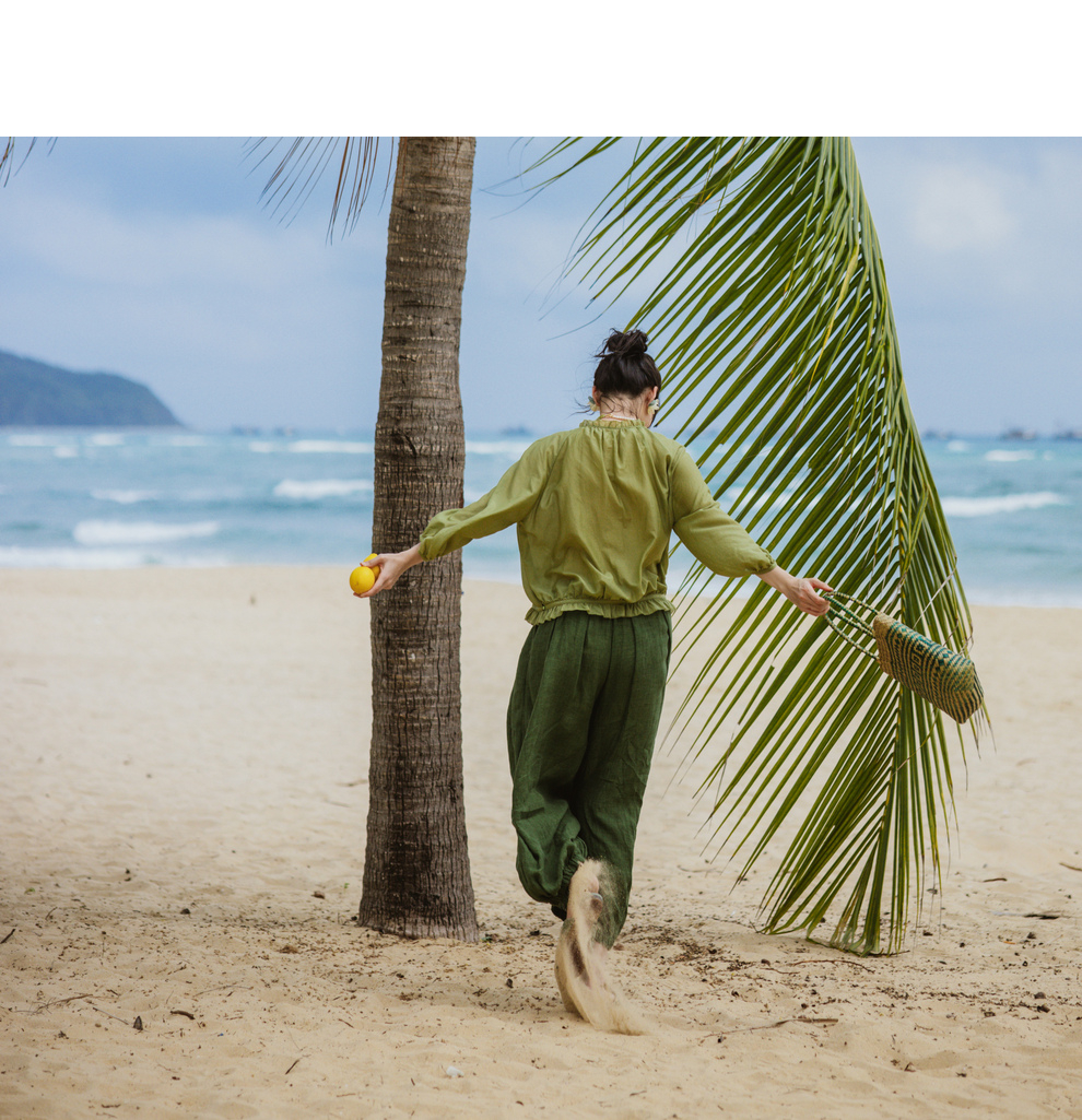 以天然亚麻为载体,融合热烈色彩与自在剪裁为身在城市、心怀远方的女性提供兼具美学与舒适的旅行着装