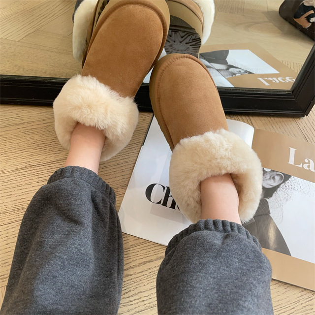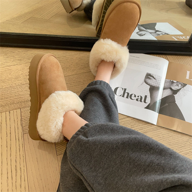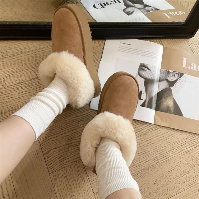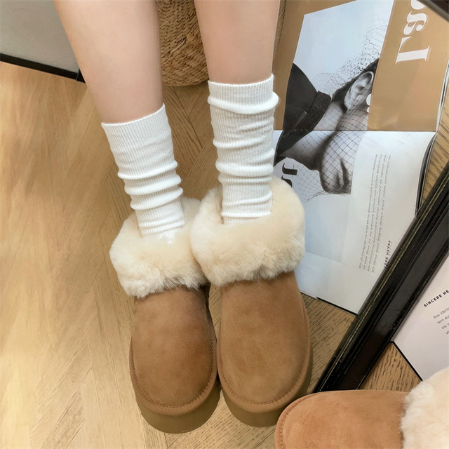 密实羊毛圈裹住脚踝,隔绝寒风侵袭,