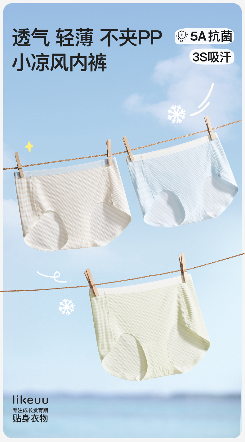 【明星同款】ubras旗下likeuu小凉风内衣裤女学生初高中青春发育期儿童内衣少女文胸内裤凉感夏(日常I)