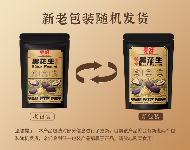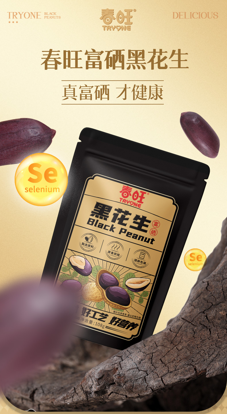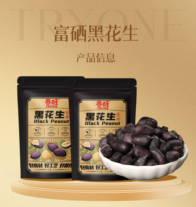 春旺富硒黑花生香脆零食下酒菜茶点黑皮酥脆富硒花生优选108g/袋
