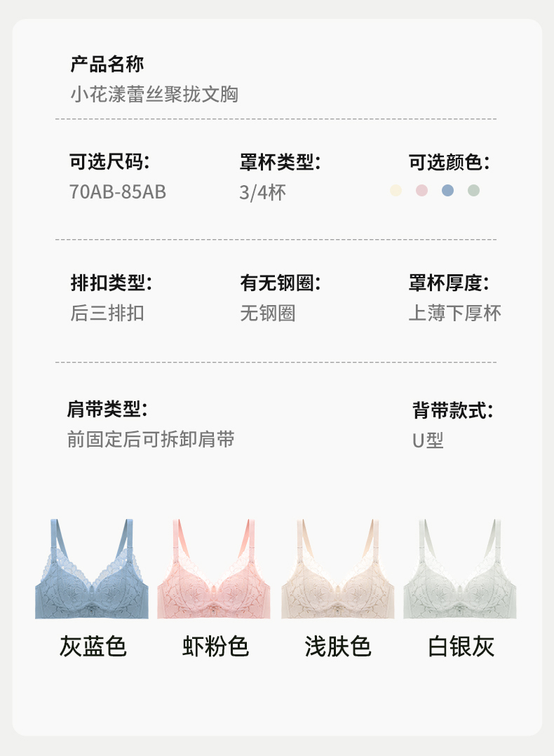 雅黛俪小胸聚拢显大内衣上薄下厚杯性感蕾丝文胸胸罩