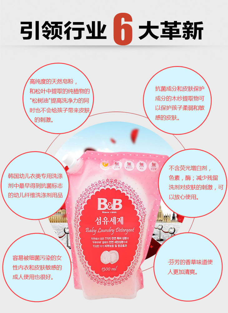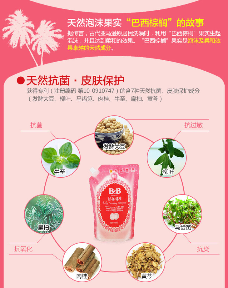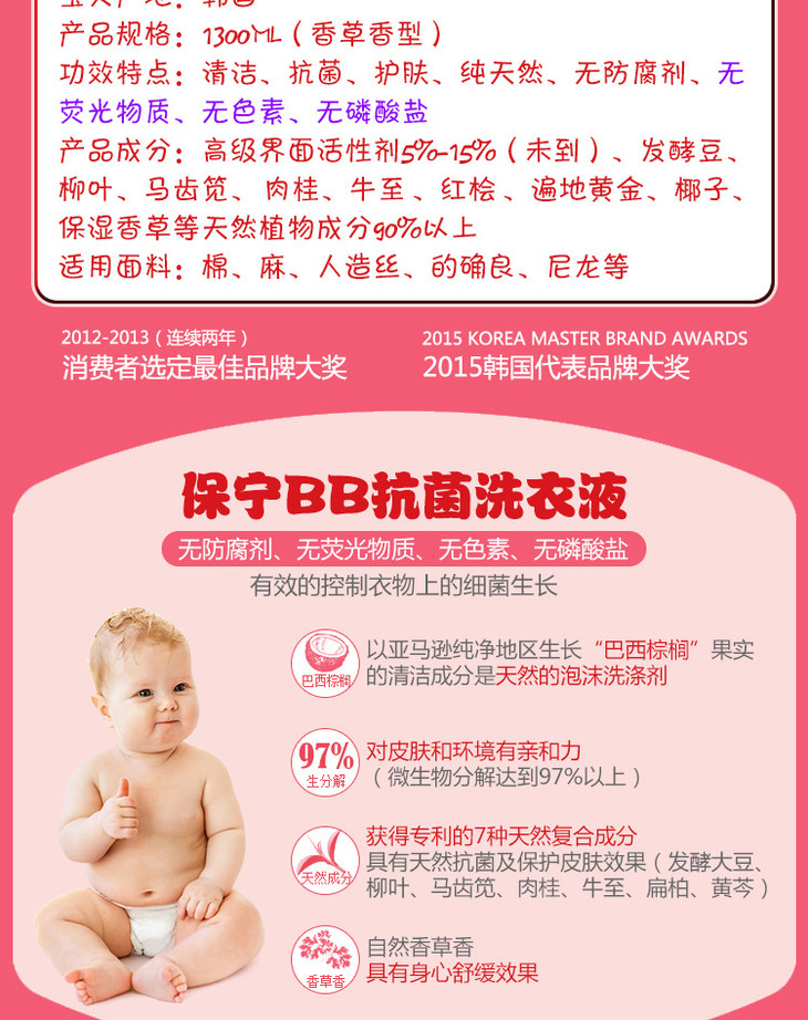 【洗衣液】。保宁洗衣液1300ml儿童宝宝bb香草味抗菌洗衣液