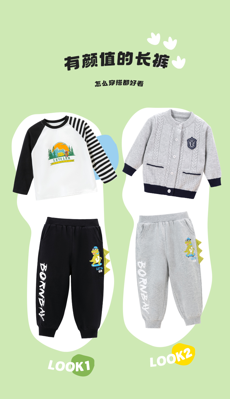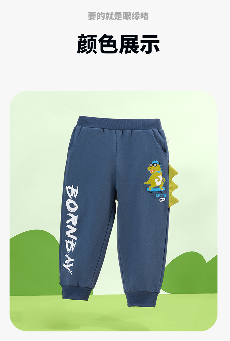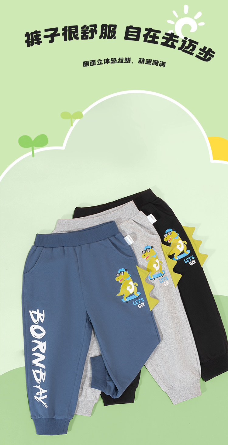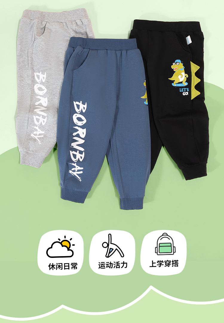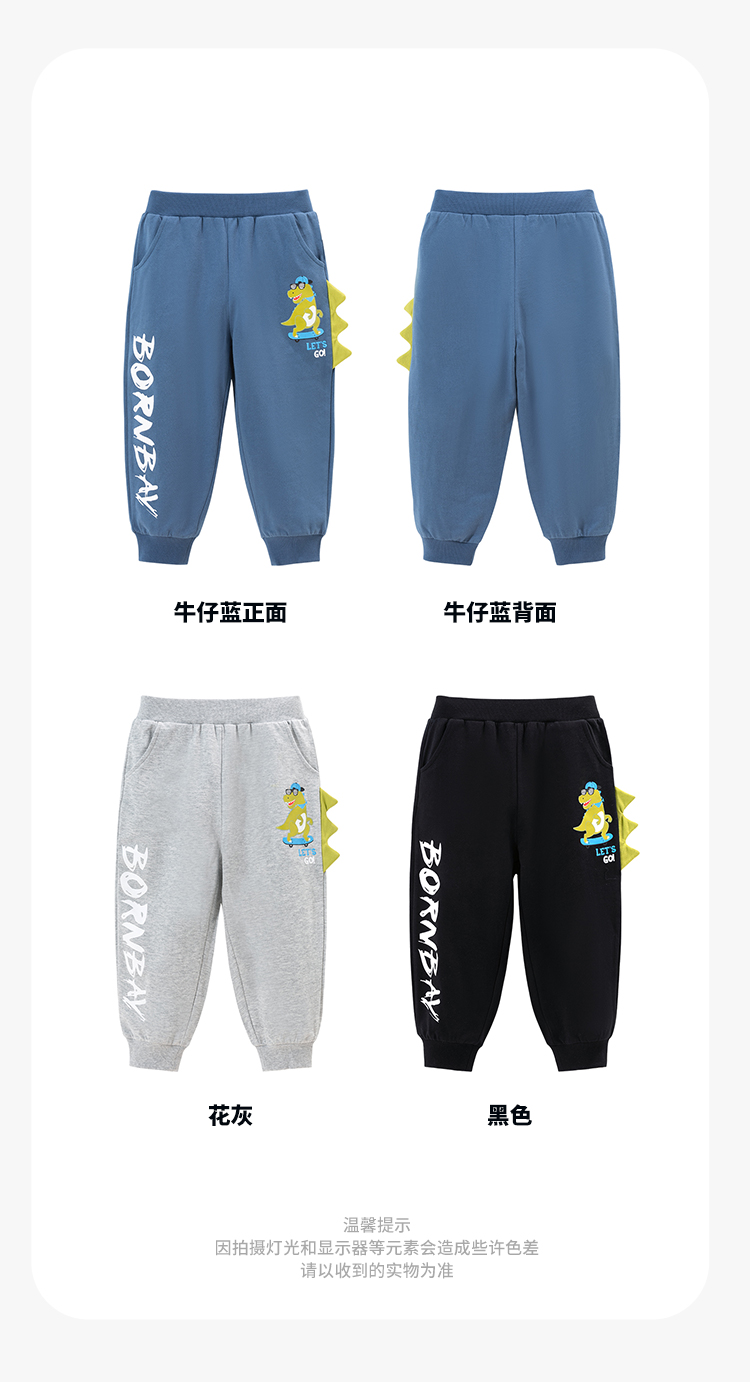 贝贝怡男童纯棉运动裤休闲卫裤2024秋季儿童裤子宽松中大童束脚裤ZB3DK018