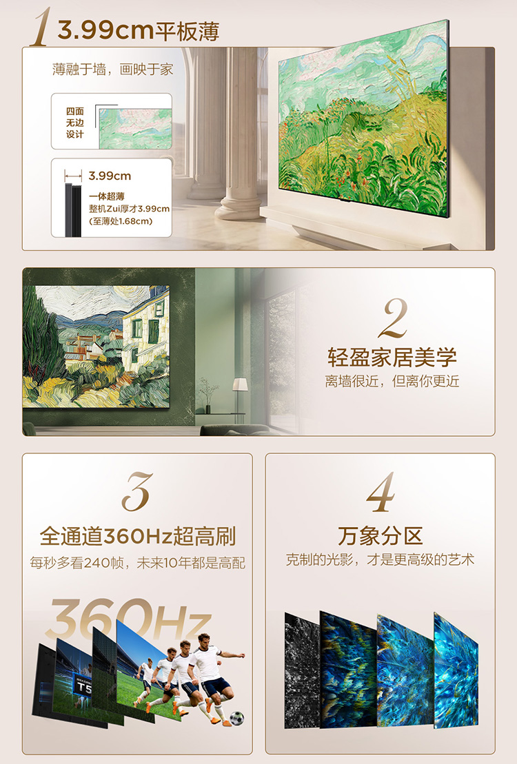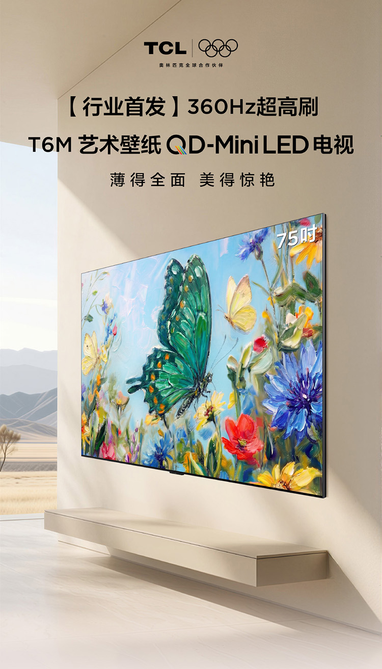 【新品上市】TCL艺术壁纸电视 75T6M 75英寸 3.99cm平板薄 轻盈家居美学 QD-Mini LED 全通道360Hz超高刷