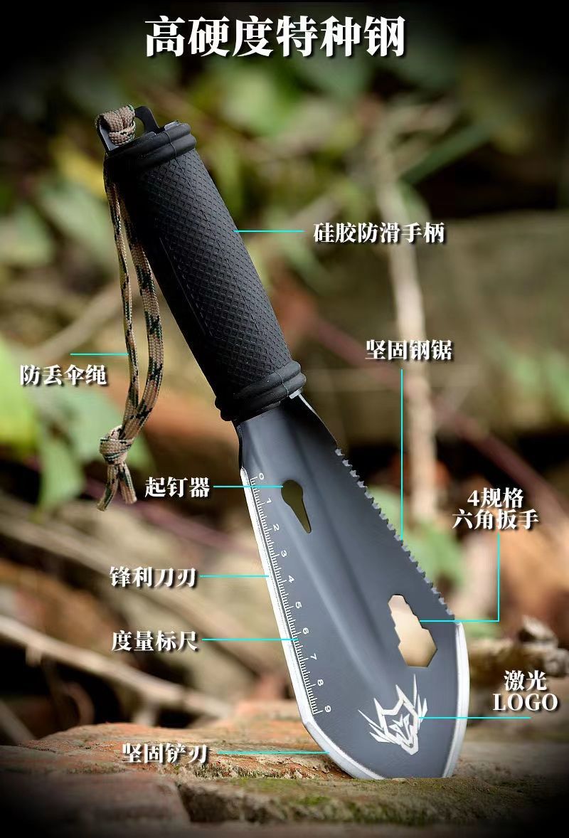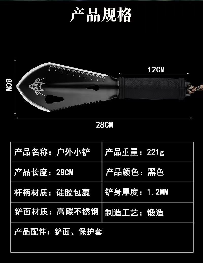 户外小手铲便携不锈钢多功能工兵铲车载钓鱼赶海小锹挖野菜花园铲
