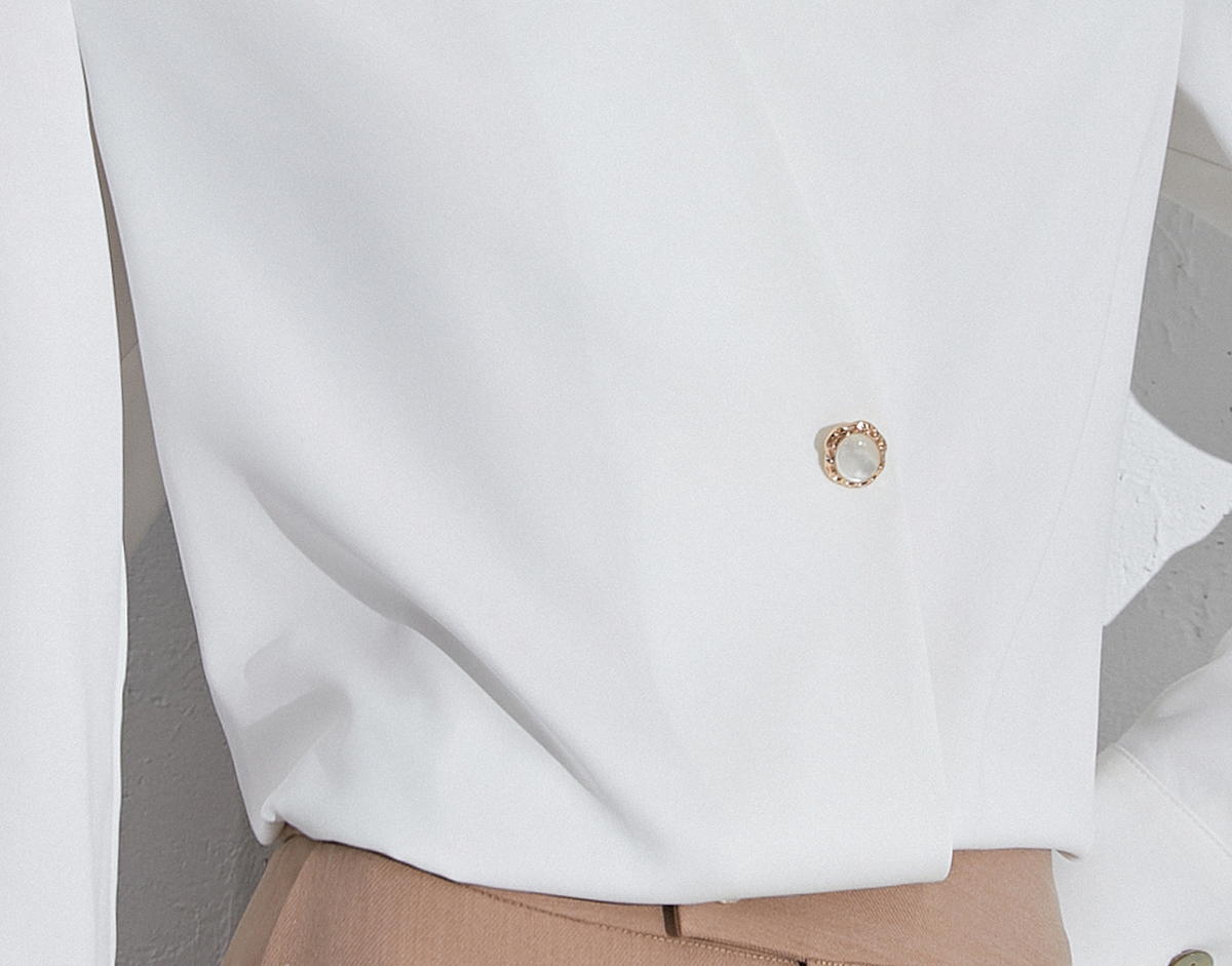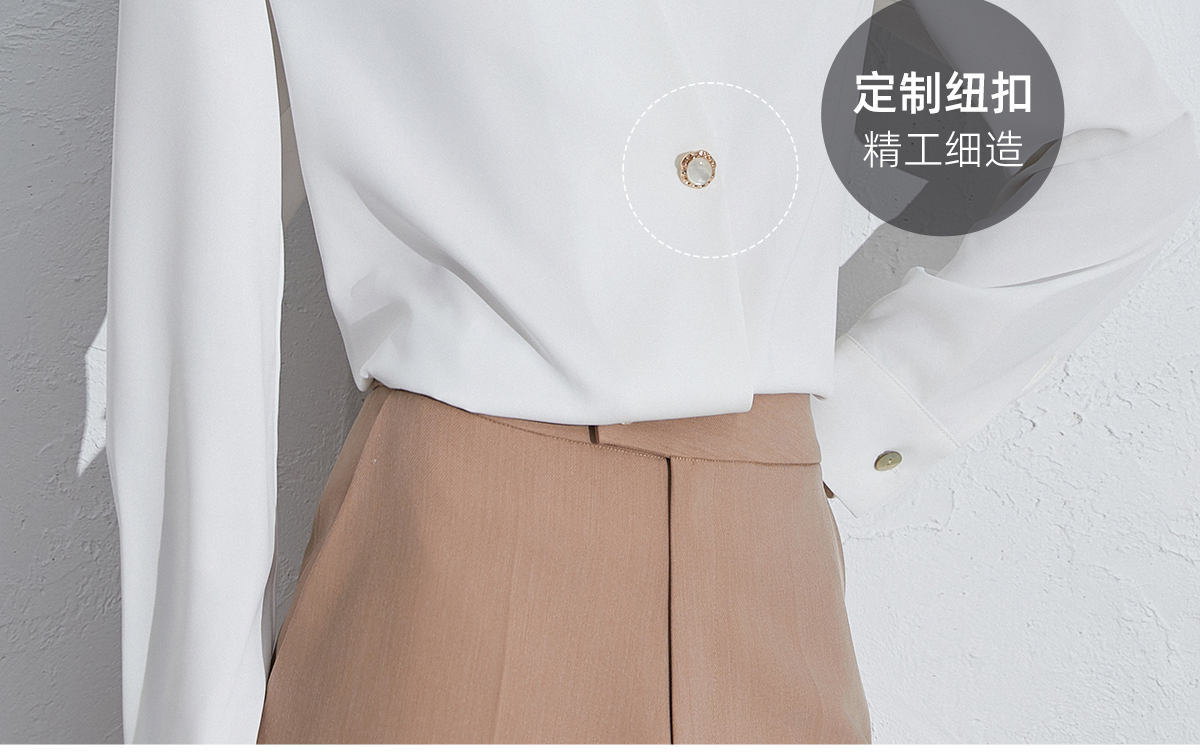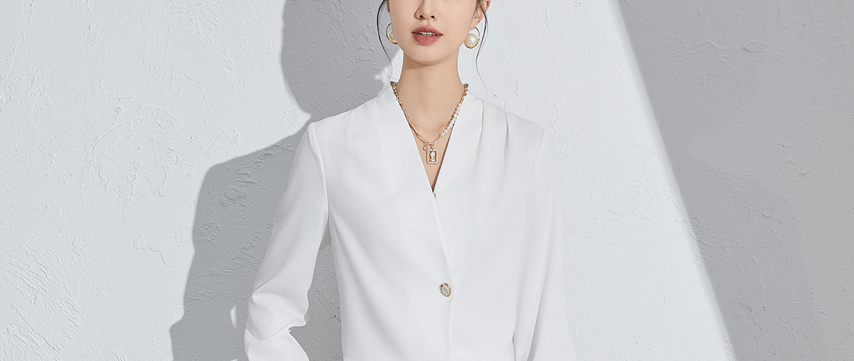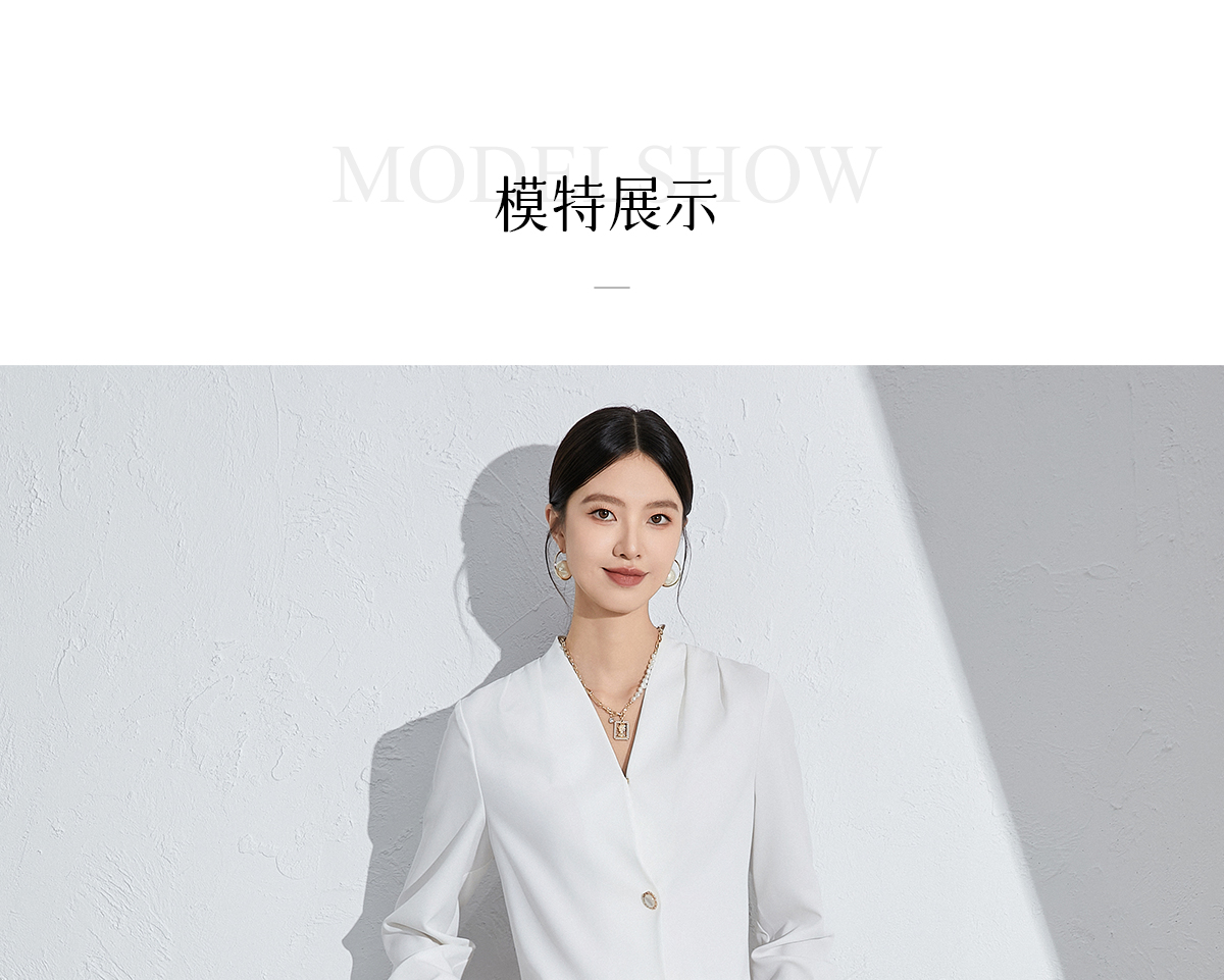 艾尚臣白色V领衬衫2024新款女轻奢高级感女装长袖职业面试正装女