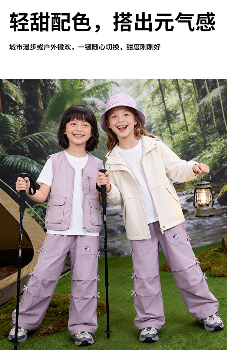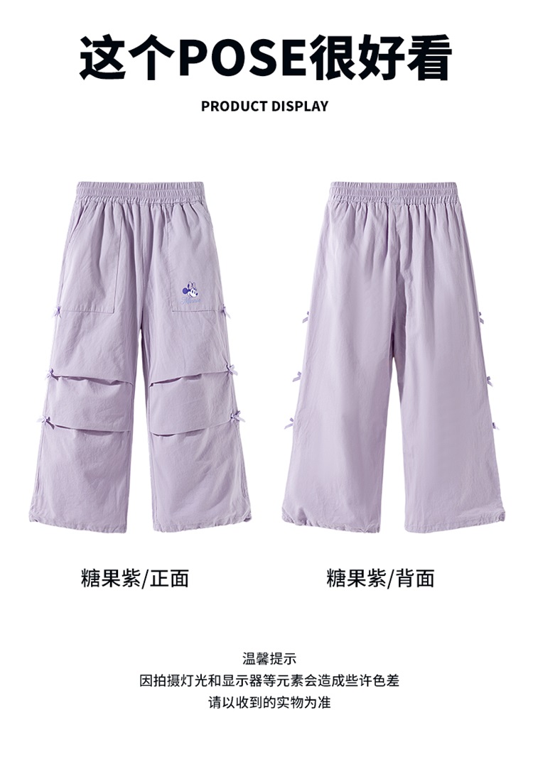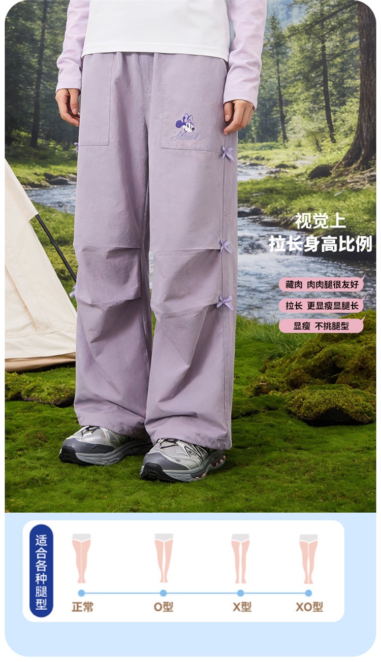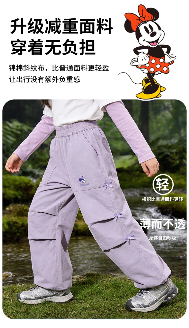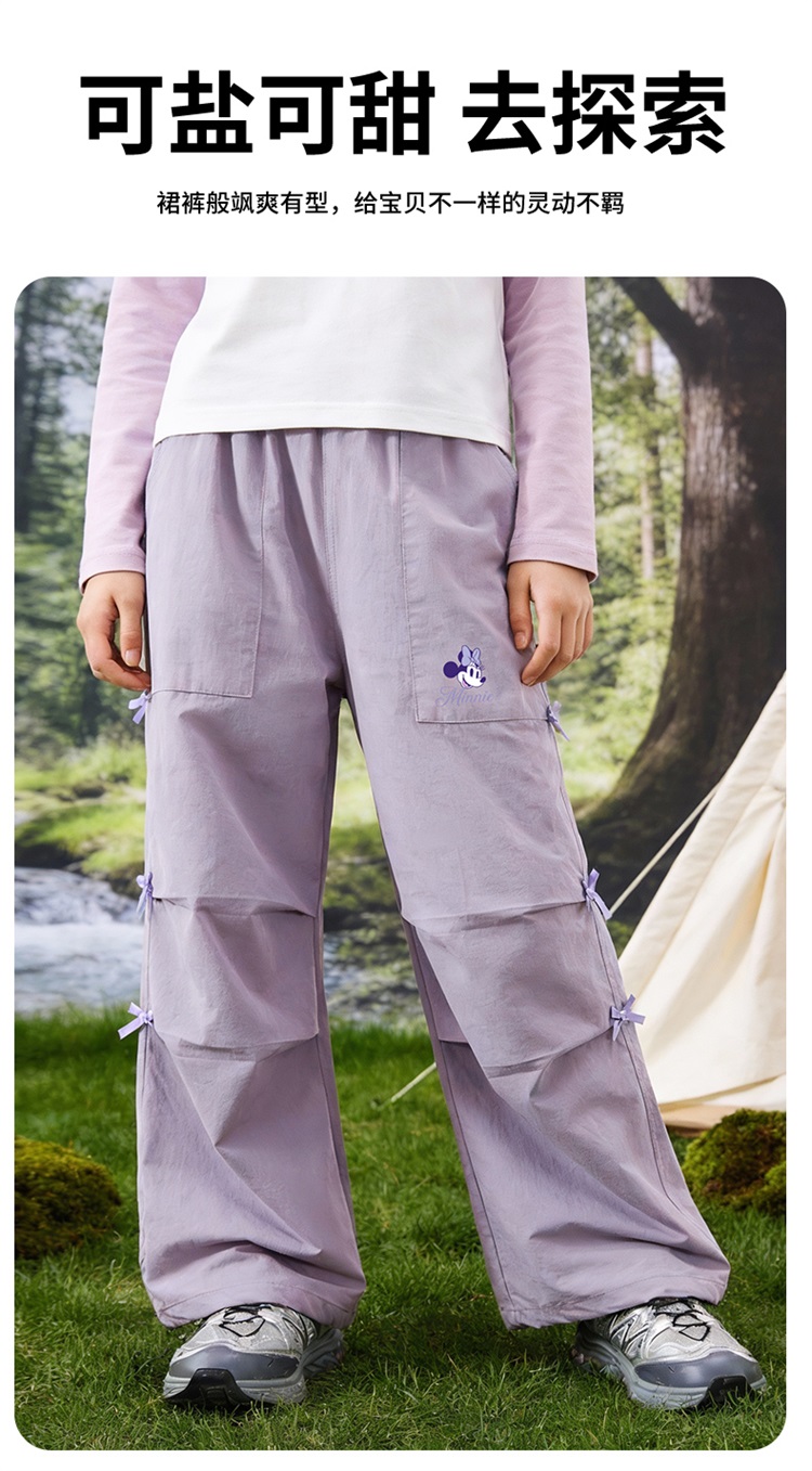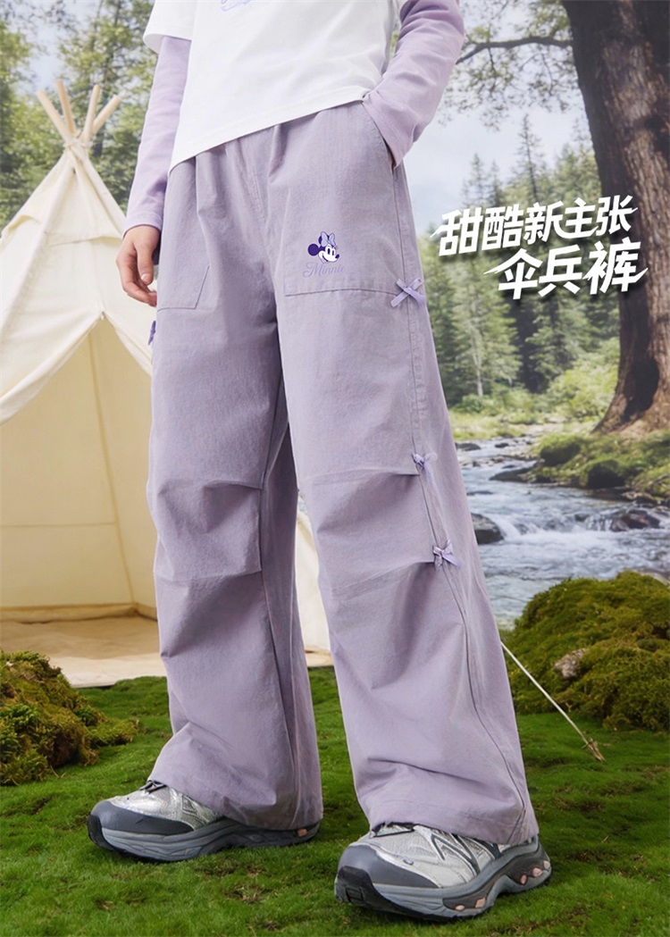 迪士尼(Disney)女童休闲时尚蝴蝶结工装裤抽绳款宽松直筒裤子26春秋新款ZD1FK018