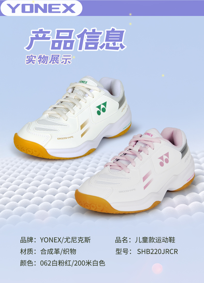 YONEX尤尼克斯yy羽毛球鞋儿童款青少年透气童鞋运动鞋SHB220JRCR