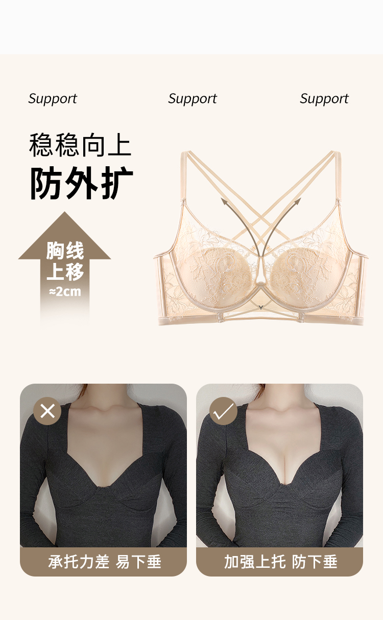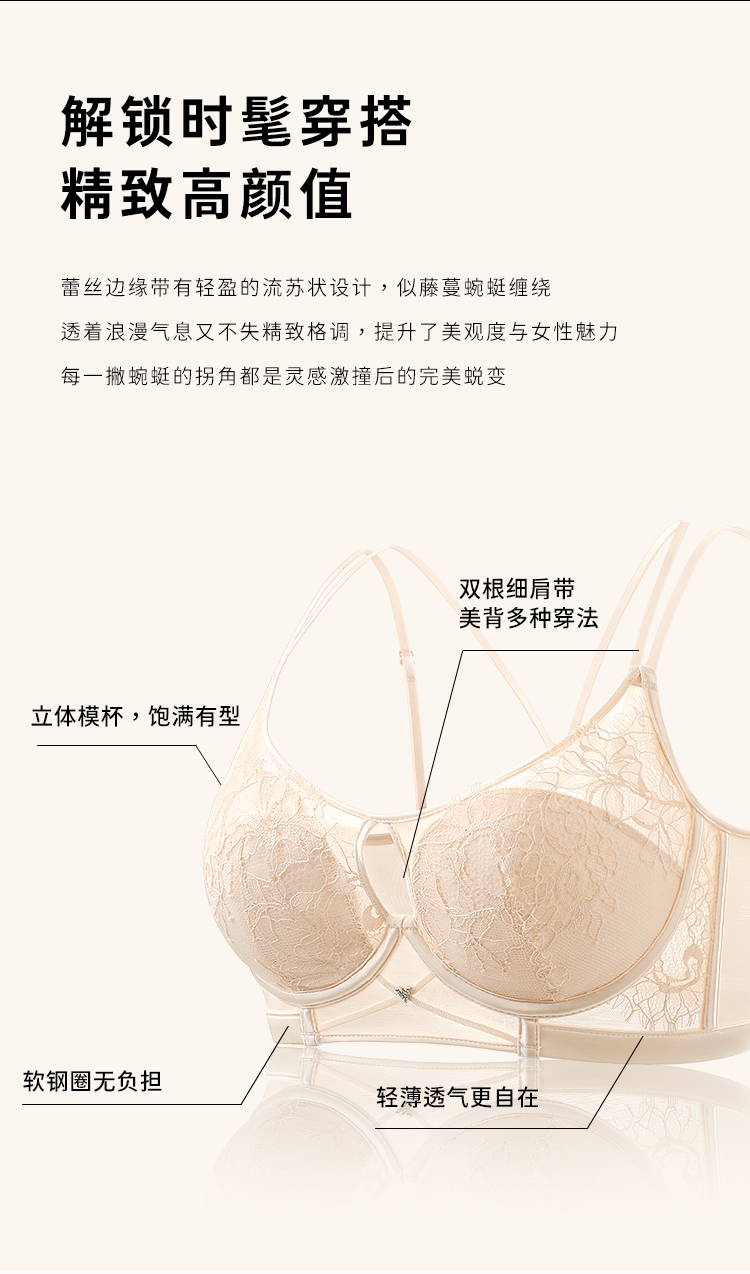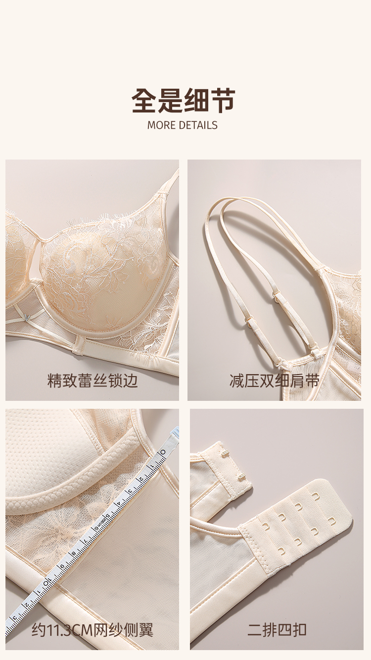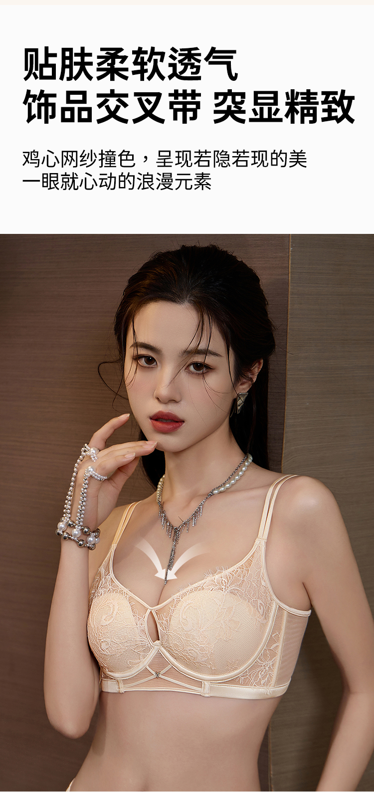 D2-【B-C杯】【性感纯欲蕾丝内衣】夏季薄款透气聚拢防下垂收副乳美背文胸罩 魅影倩丽/丝薄媚影