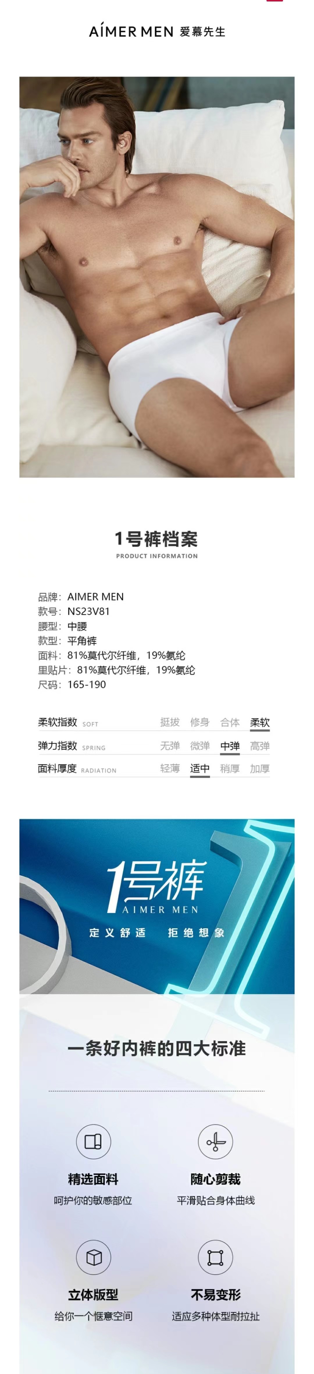 4F爱慕先生1号裤平角内裤