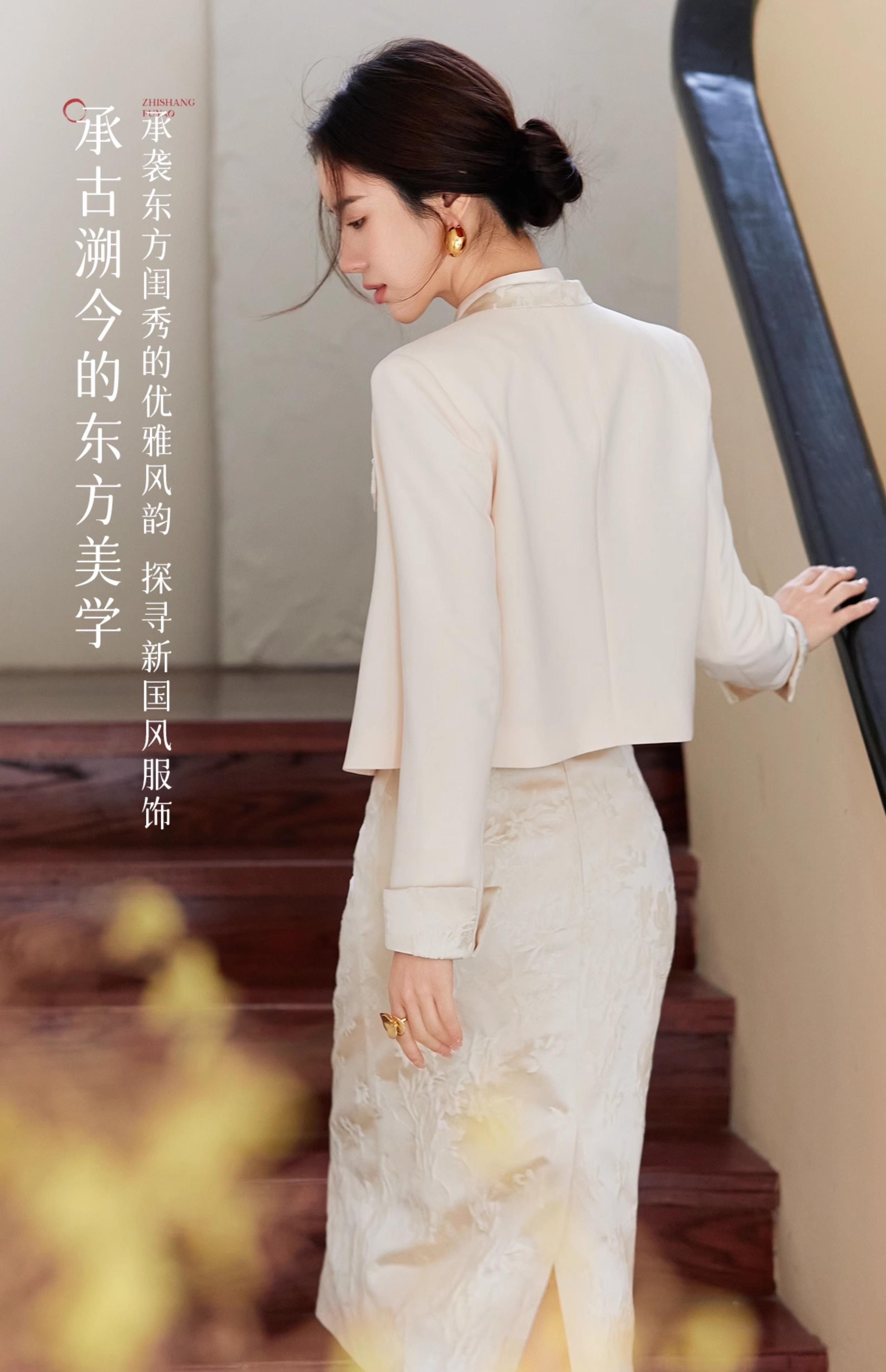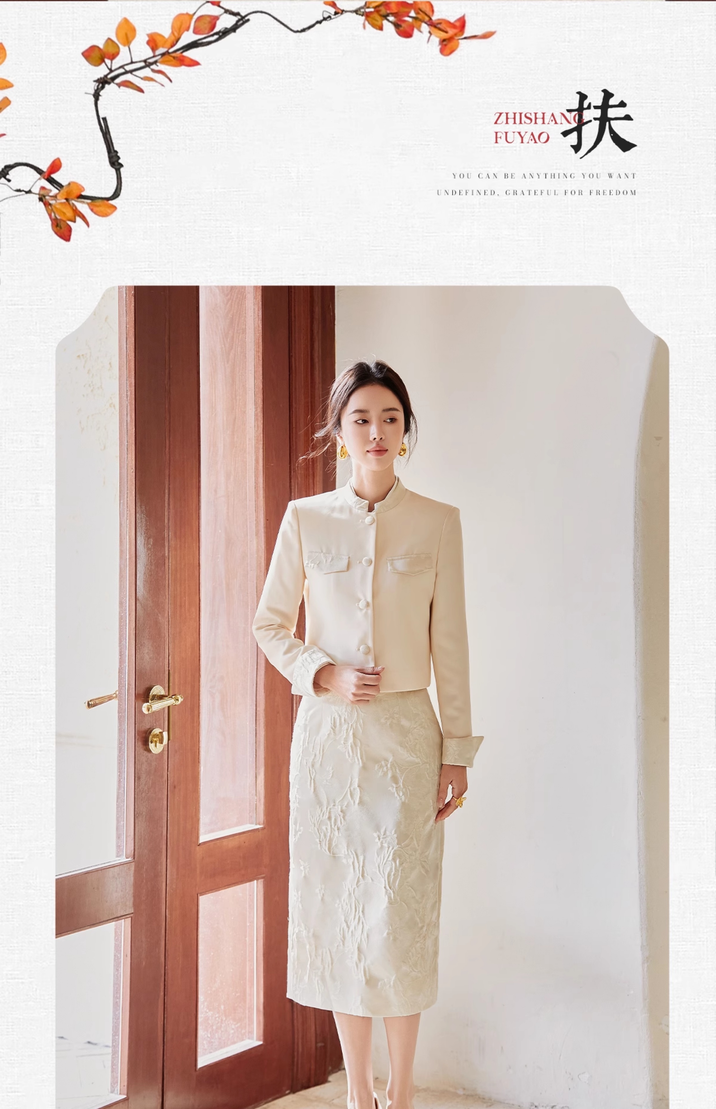 FUYAO扶摇 杏色西装外套女2025新款高端新中式国风西服短外套上衣