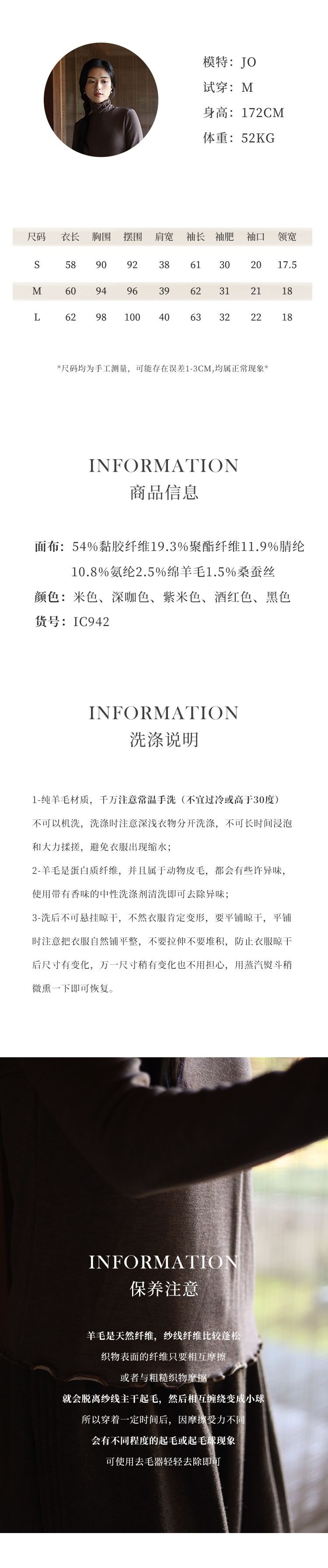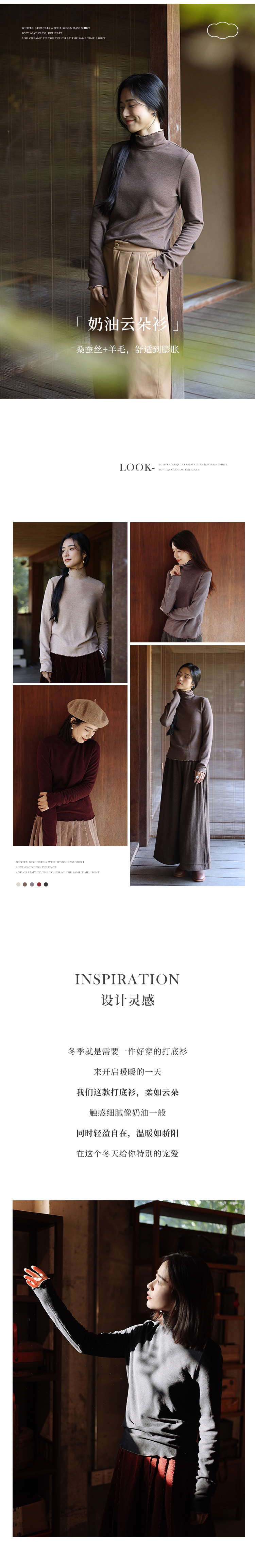 绽放942/高端真丝桑蚕丝羊毛亲肤高领打底衫2023冬季长袖百搭毛衣