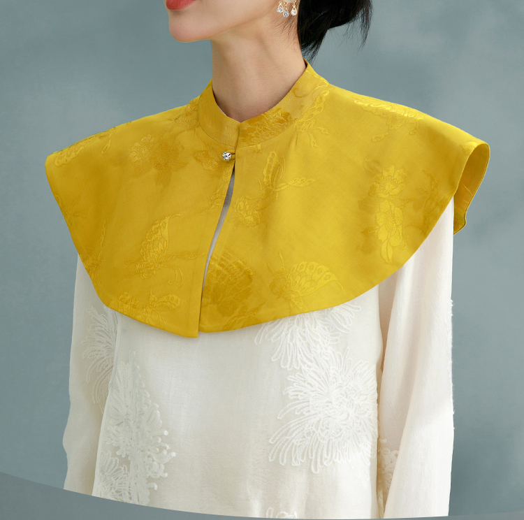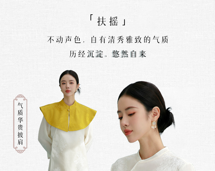 扶摇 黄色复古云肩2024新款国风披肩绝美圆领新中式上衣坎肩