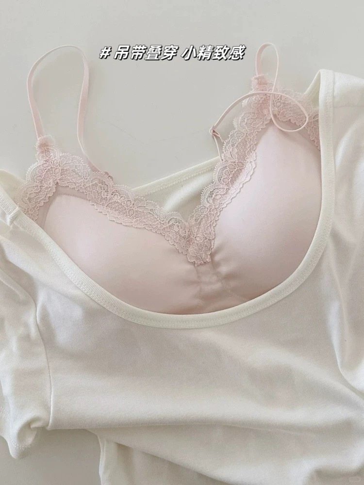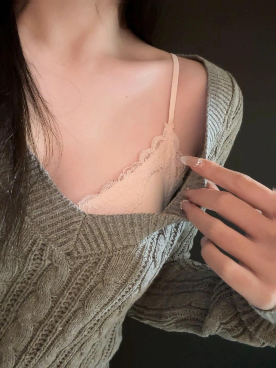 【舒芙蕾内衣】法式蕾丝边+经k-187典深V领设计,搭配一些大领口的罩衫都美到无法抗拒,马卡龙色系 纯纯的氛围感
