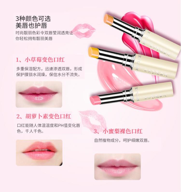 【中欧班列精选4支】日本蜜梨品牌变色唇膏裸色 /胡萝卜色 /小草莓 1.5g/支 品牌授权直供