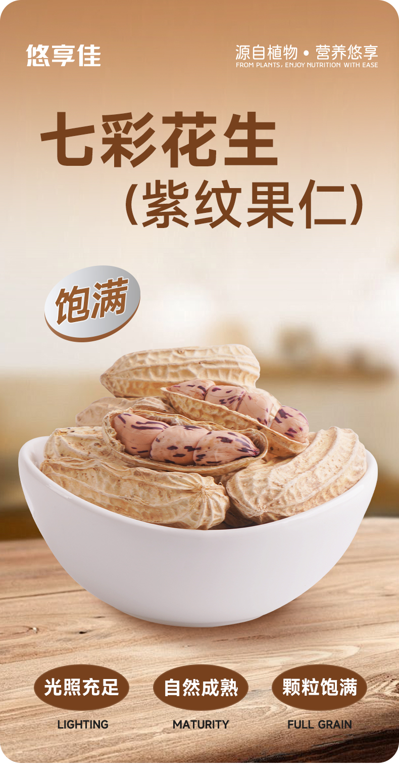 悠享佳云南七彩花生500g带壳花生当季新货特产黑花生炒货休闲零食