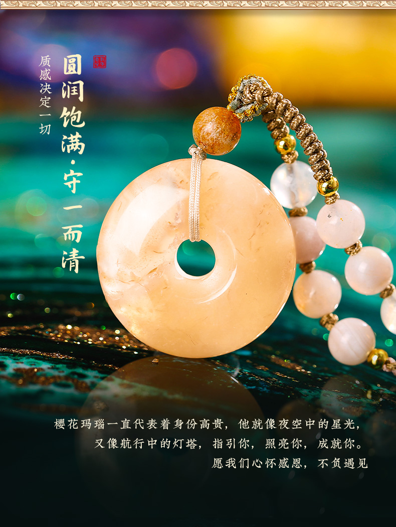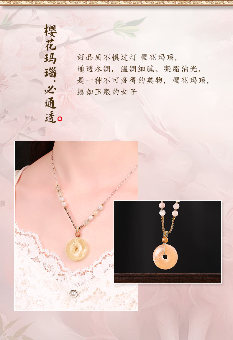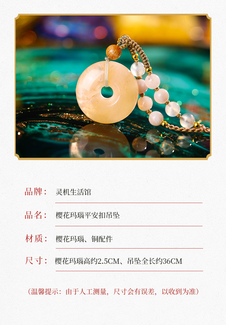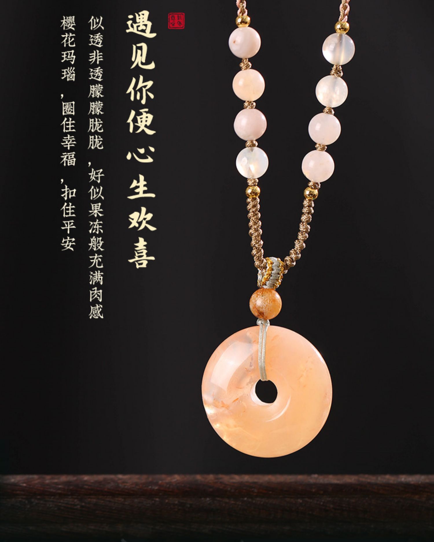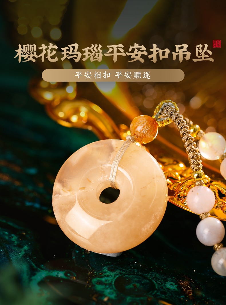 【祈愿吉品】樱花玛瑙平安扣吊坠女
