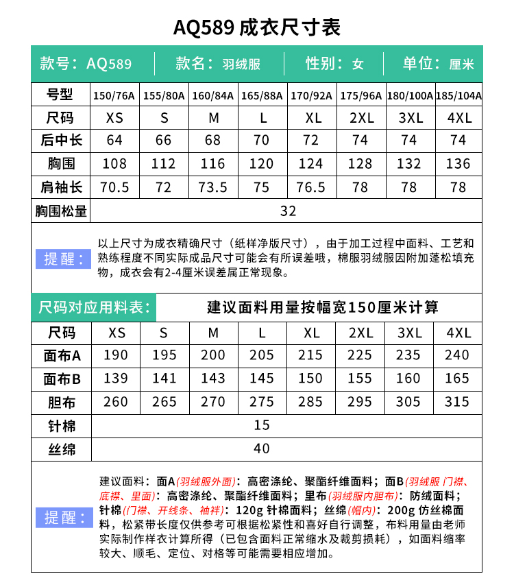 裁缝学苑AQ589新款立领小个子短款羽绒服纸样女连帽面包服打版裁剪图纸