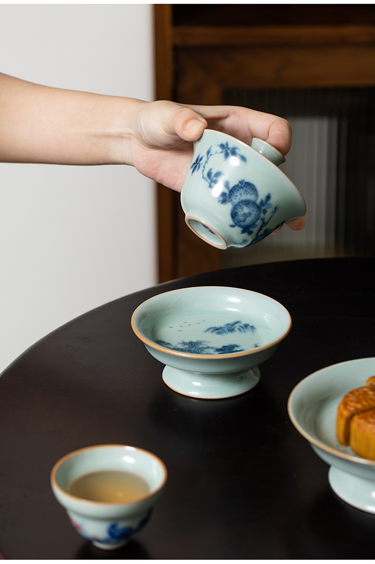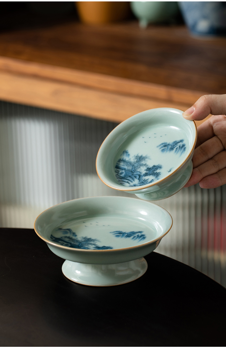 永利汇青花壶承果盘瓷功夫壶托茶承干泡台茶盘茶道手工开片可养