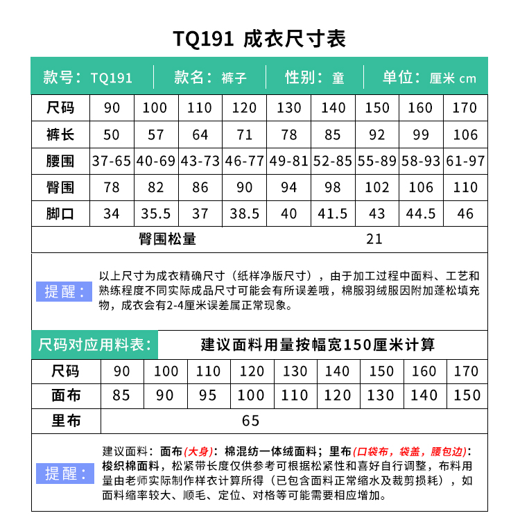 裁缝学苑TQ191加绒加厚阔腿裤纸样儿童可束口长裤子童装服装打板