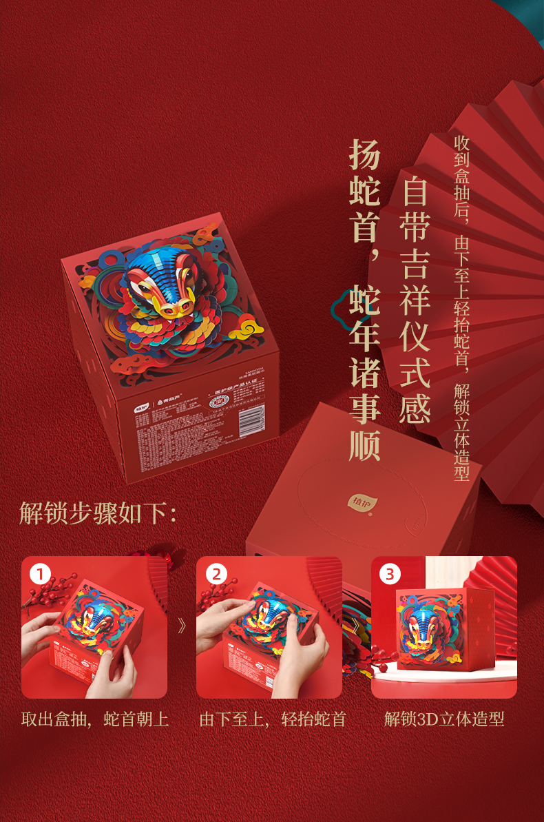 蛇年限定抽纸高级礼盒装家用卫生纸实用面巾纸过节送礼餐巾纸 8盒