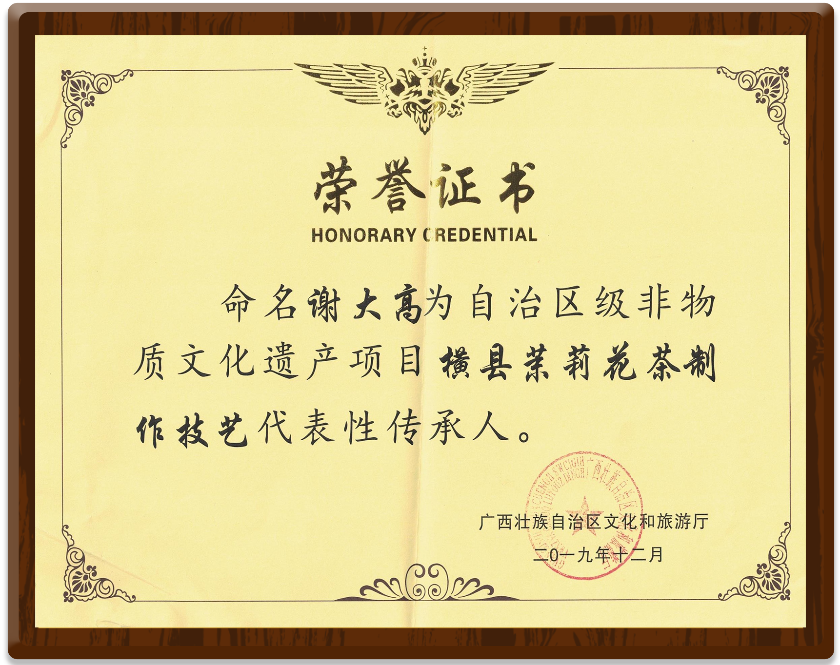 2、非遗大师&国茶大师-谢大高先生亲自监制 | 省级非遗(也是横县茉莉花茶的唯一省级非遗);