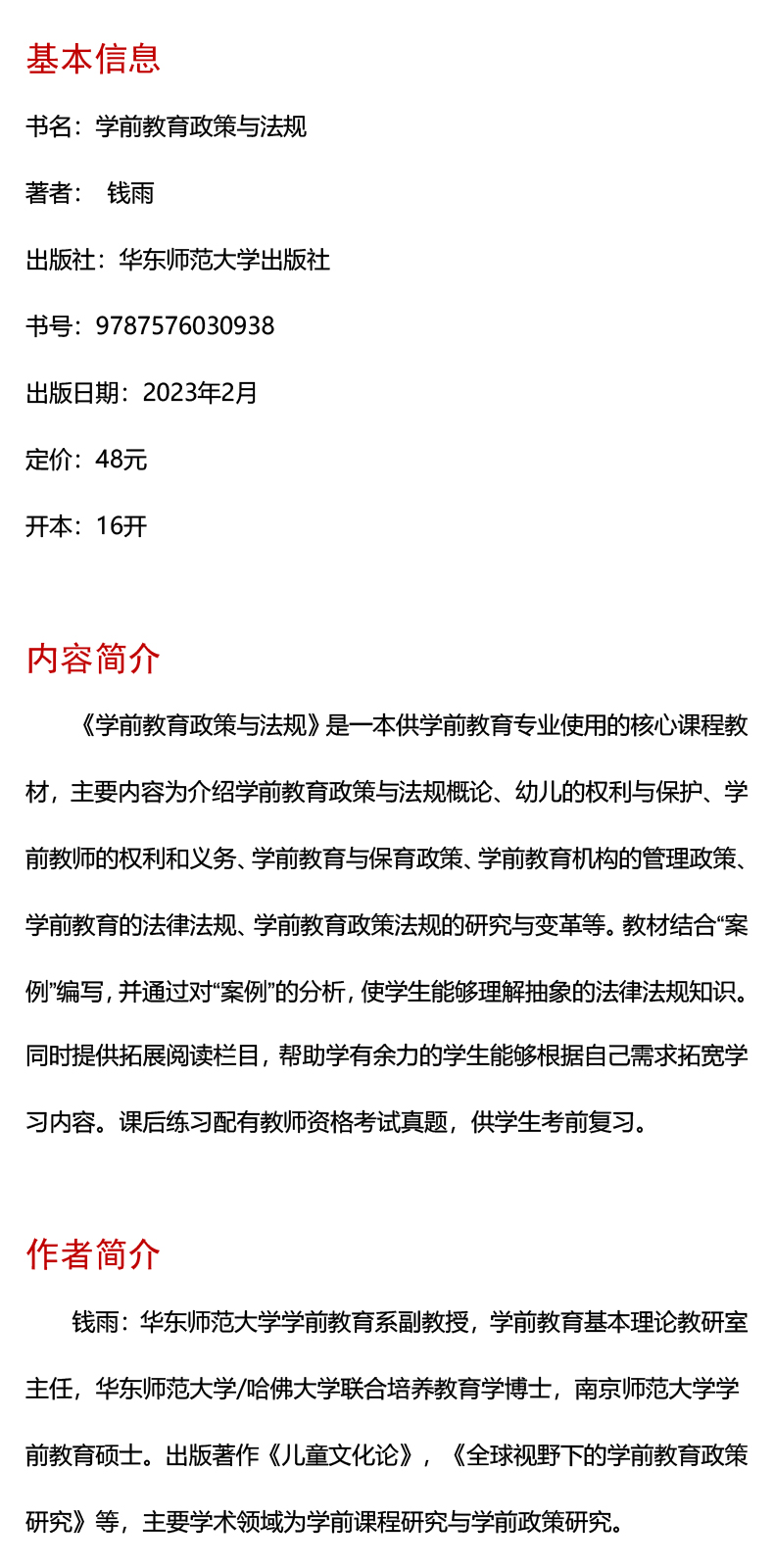 学前教育政策与法规 钱雨 微课版 学前教育专业系列教材