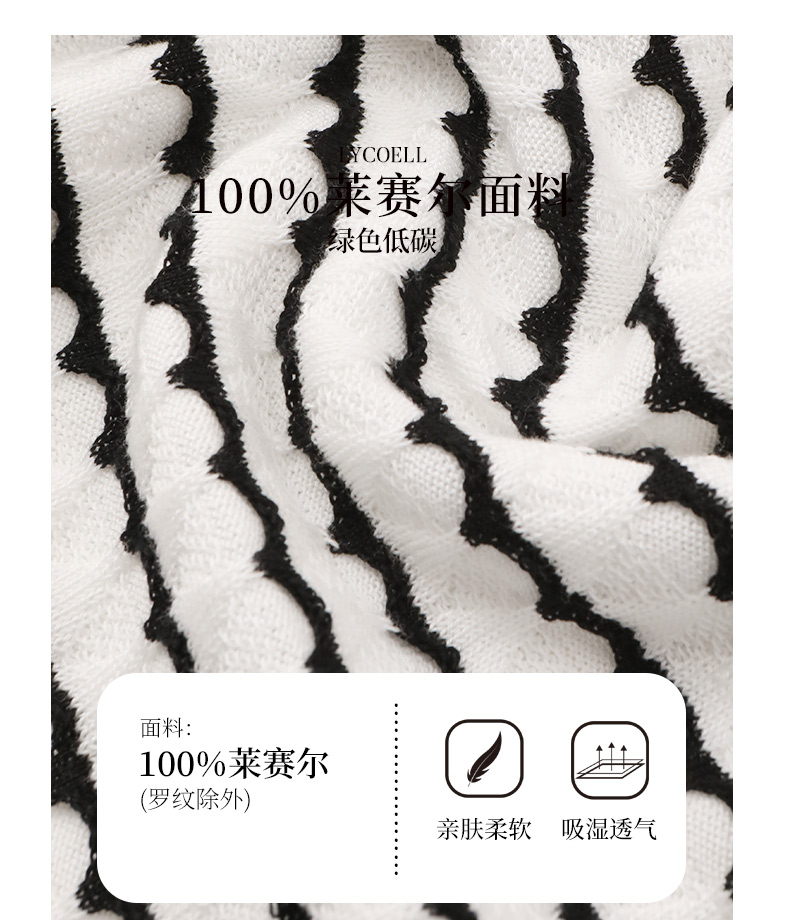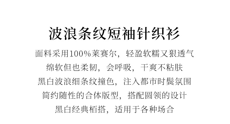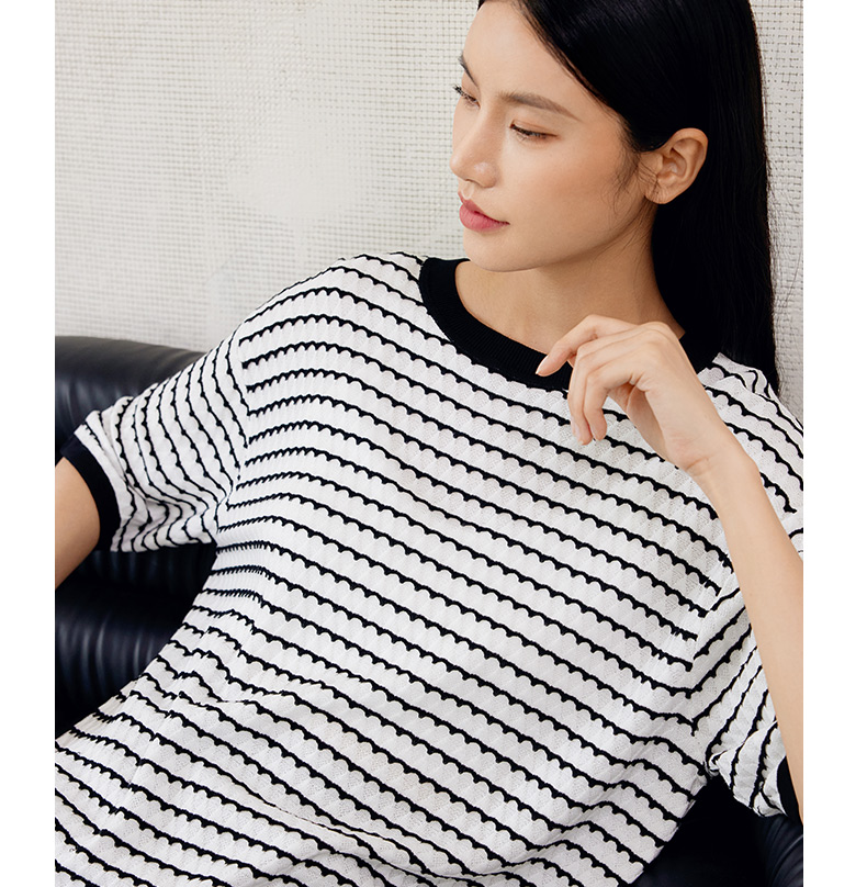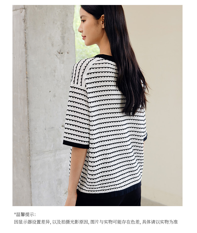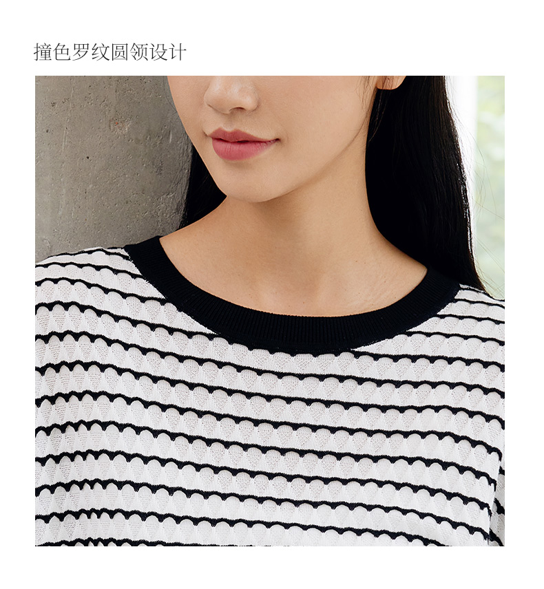 玳莎落肩袖宽松套头针织衫女2024秋季新款波浪纹圆领莱赛尔上衣 EC33104